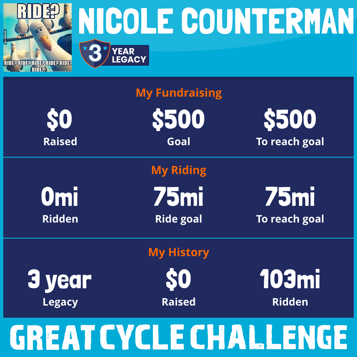 I am riding 75 mi to fight kids' cancer and save little lives. Please sponsor me to support my challenge!