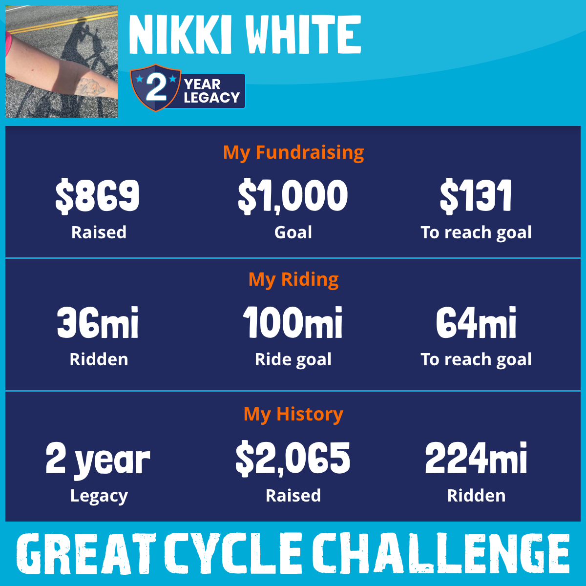 I am riding 100mi in memory of my mama, Pam. Please sponsor me and support my challenge to fight kids' cancer and save lives.