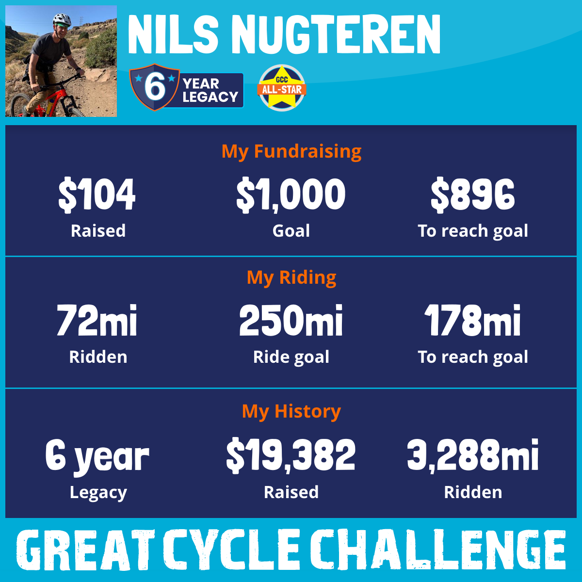 This is my 5th year participating in the Great Cycle Challenge to join the fight against cancer. The first time, in 2020, i joined in support of my brother Tony, who was diagnosed with skin cancer. In 2021 he passed away and now I ride in his memory.