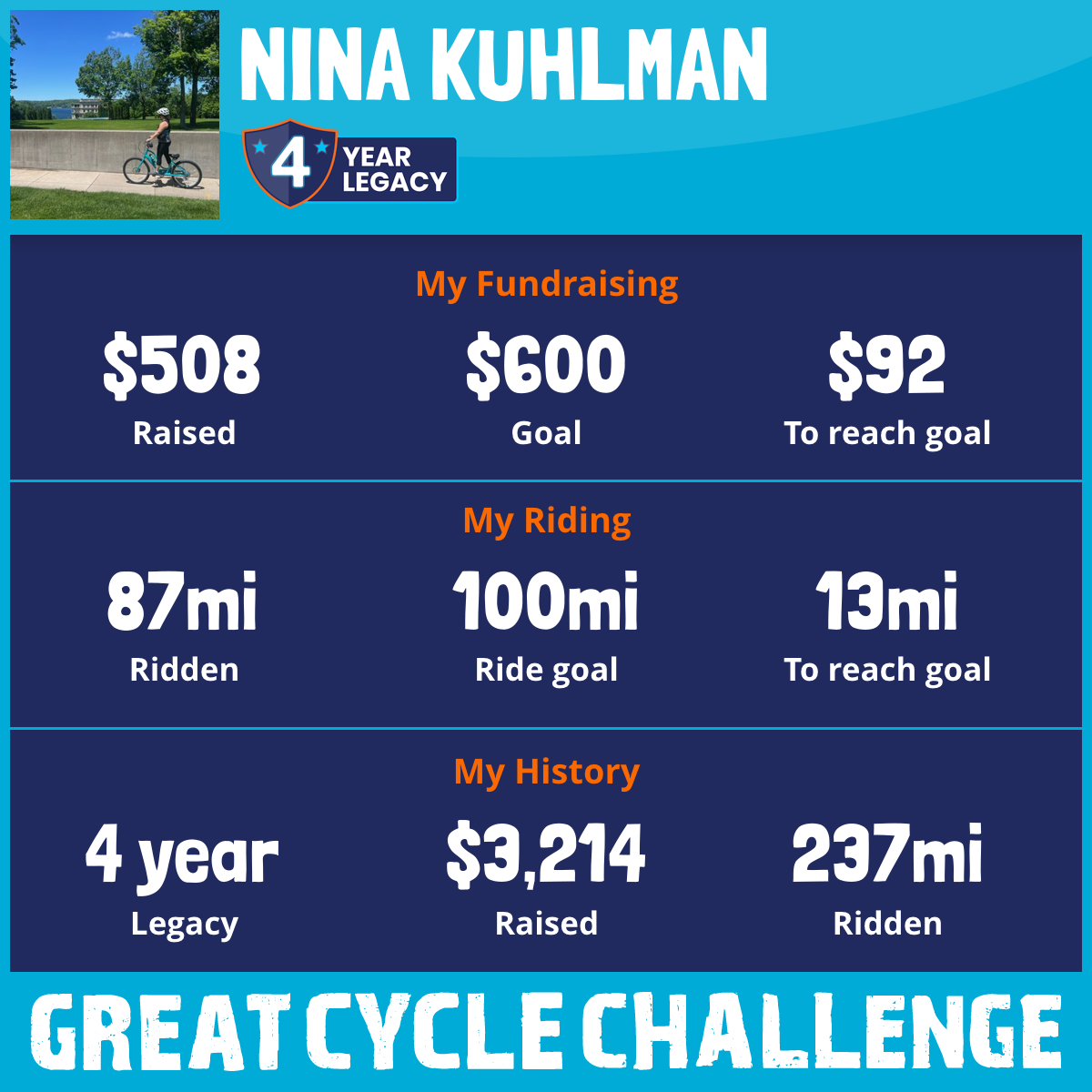 Cancer has touched everyone's lives. When my niece was diagnosed several years ago, it was a very scary time. We are so thankful for the outstanding treatment she received. She is a fighter and we are so grateful she has fully recovered. Treating cancer successfully has taken vast research, and the research needs to continue to help every child who needs it. I am also riding to do something positive this month. I could use the motivation! Grateful to join this team with my husband and friends.