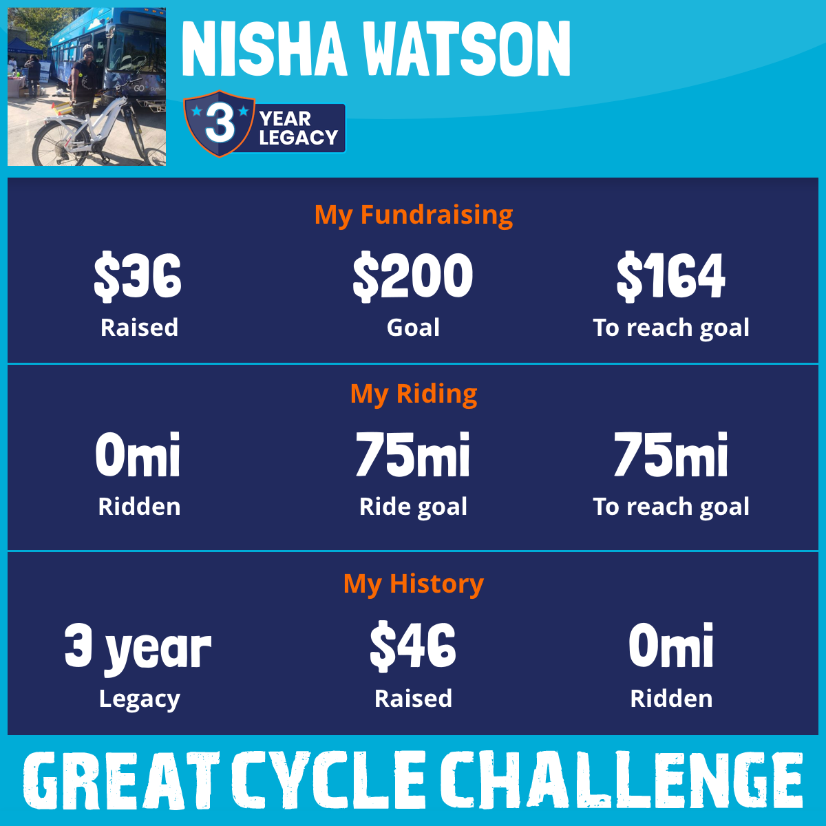 I am riding 75 mi in memory of Halima. Please sponsor me and support my challenge to fight kids' cancer and save little lives.