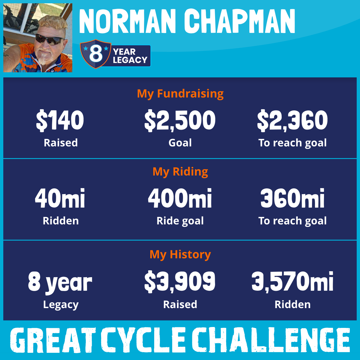 601 mi Ridden$1,004 Raised2023