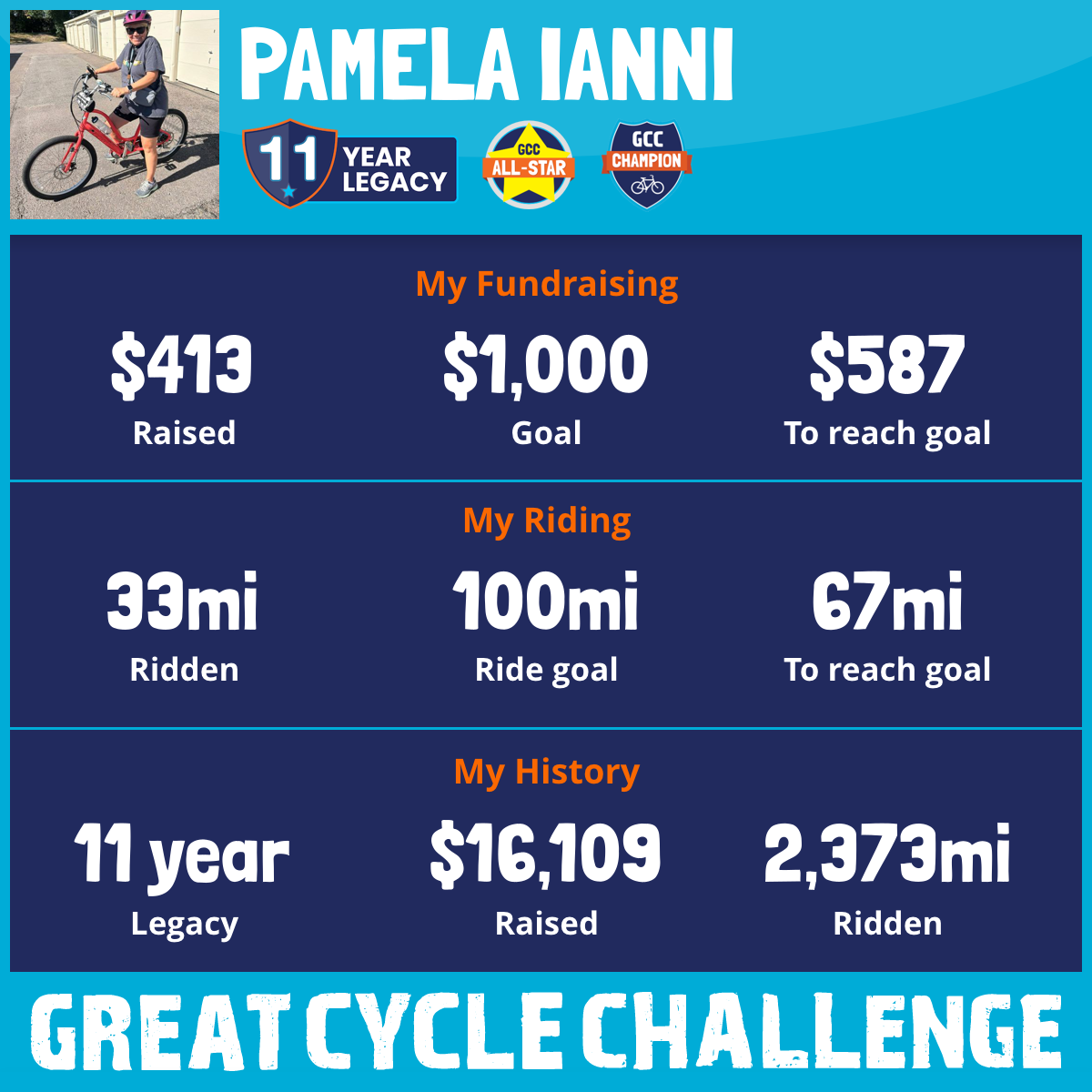 151 mi Ridden$1,221 Raised2023