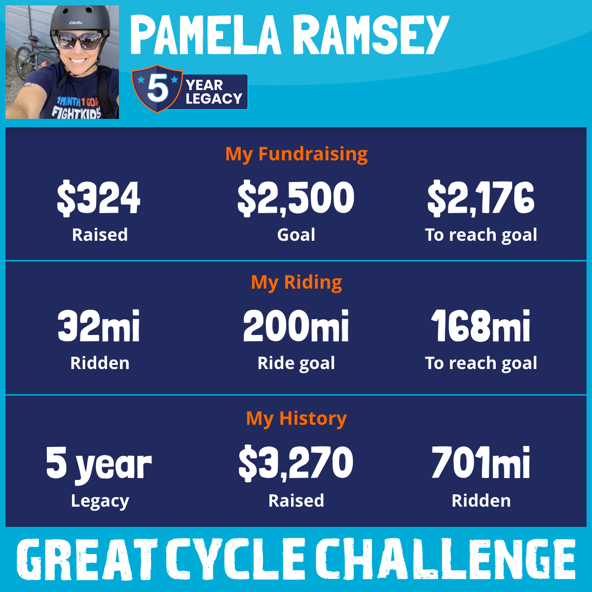 I am riding 300 mi in memory of Dave Metz. Please sponsor me and support my challenge to fight kids' cancer and save little lives.