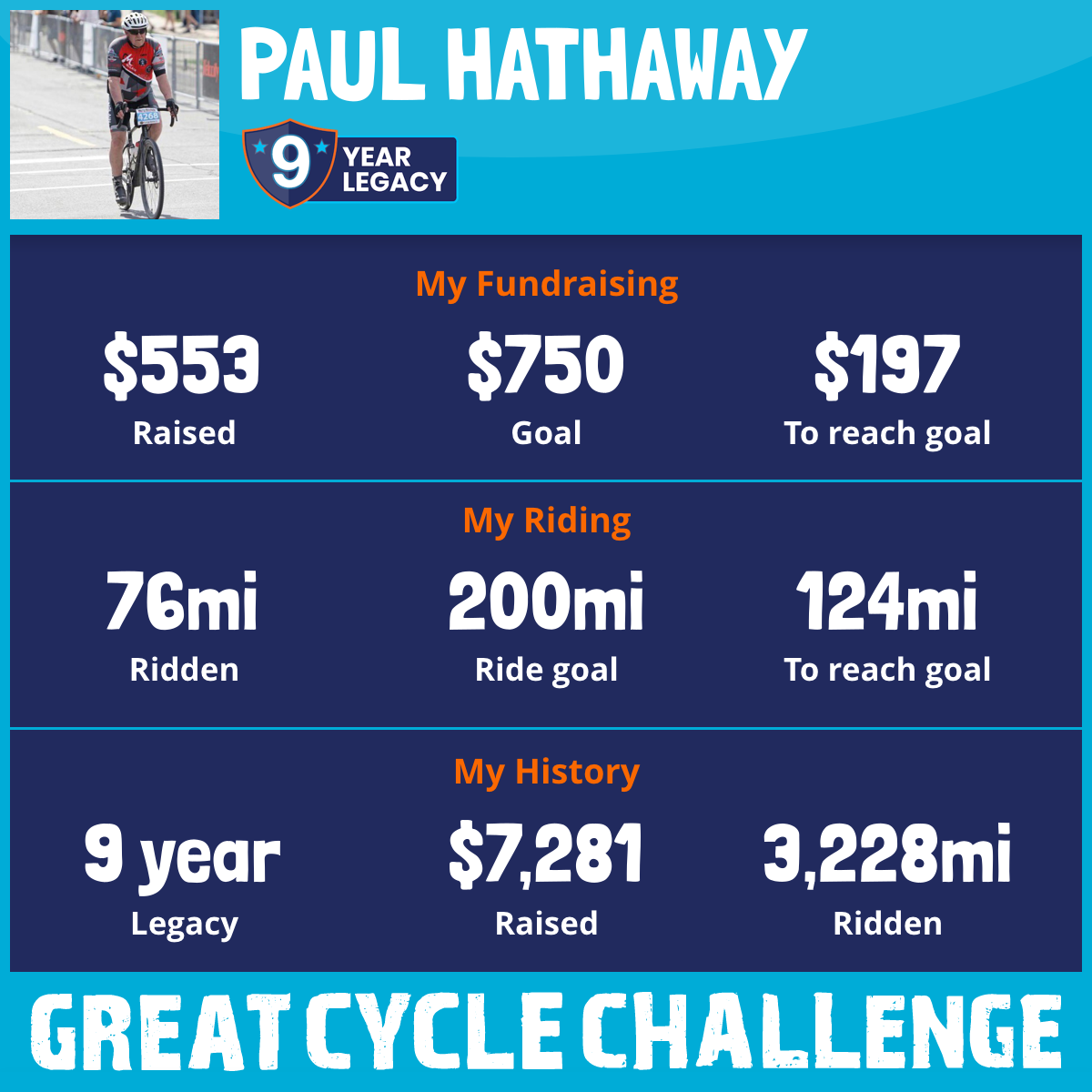 307 mi Ridden$1,085 Raised2024