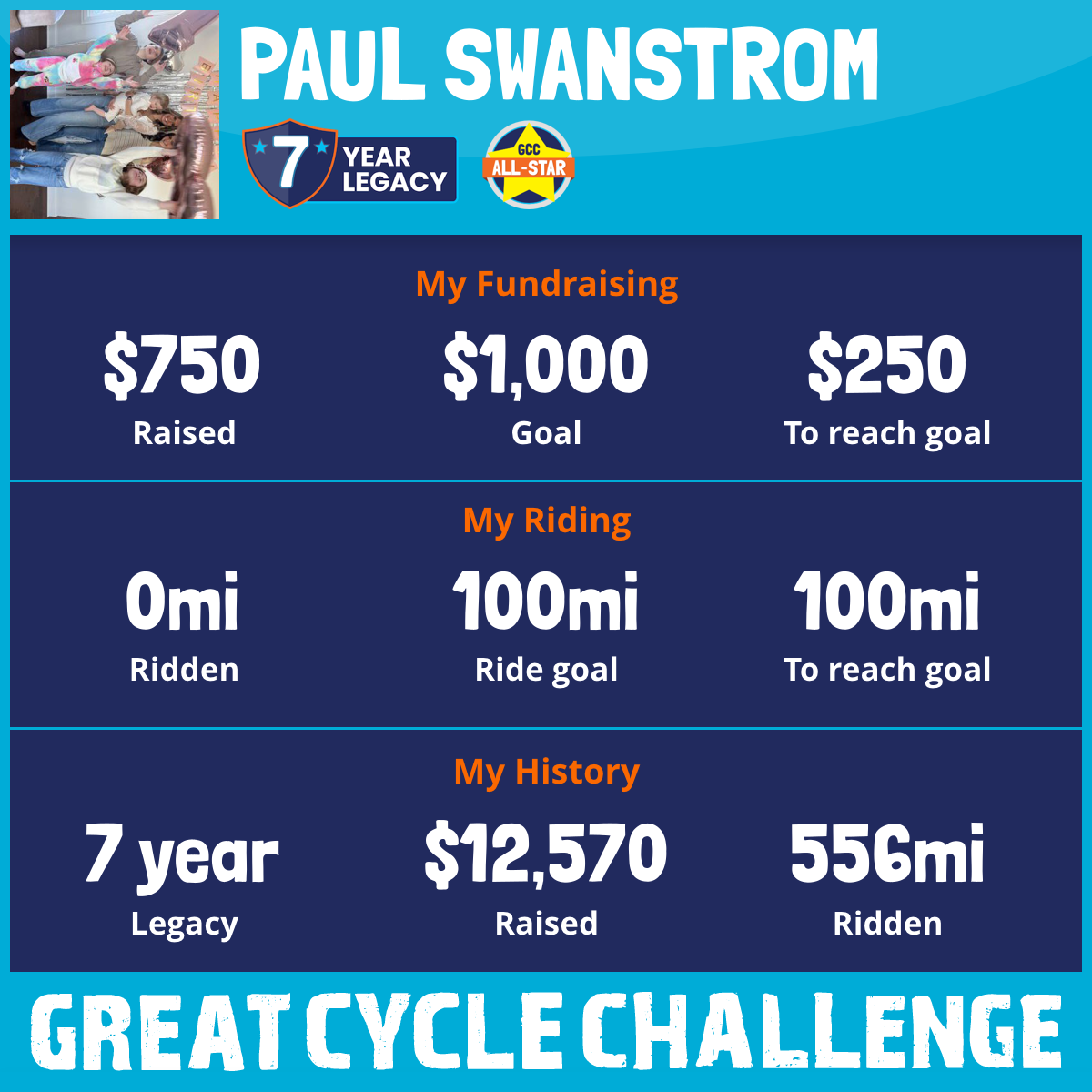 I am riding 100 mi for Grandchildren. Please sponsor me and support my challenge to fight kids' cancer and save little lives.