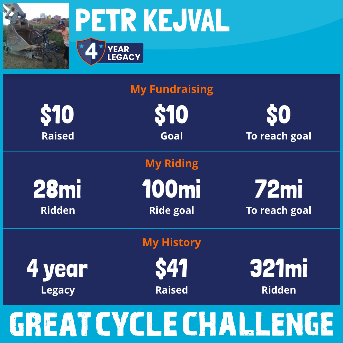 I am riding 100 mi to fight kids' cancer and save little lives. Please sponsor me to support my challenge!