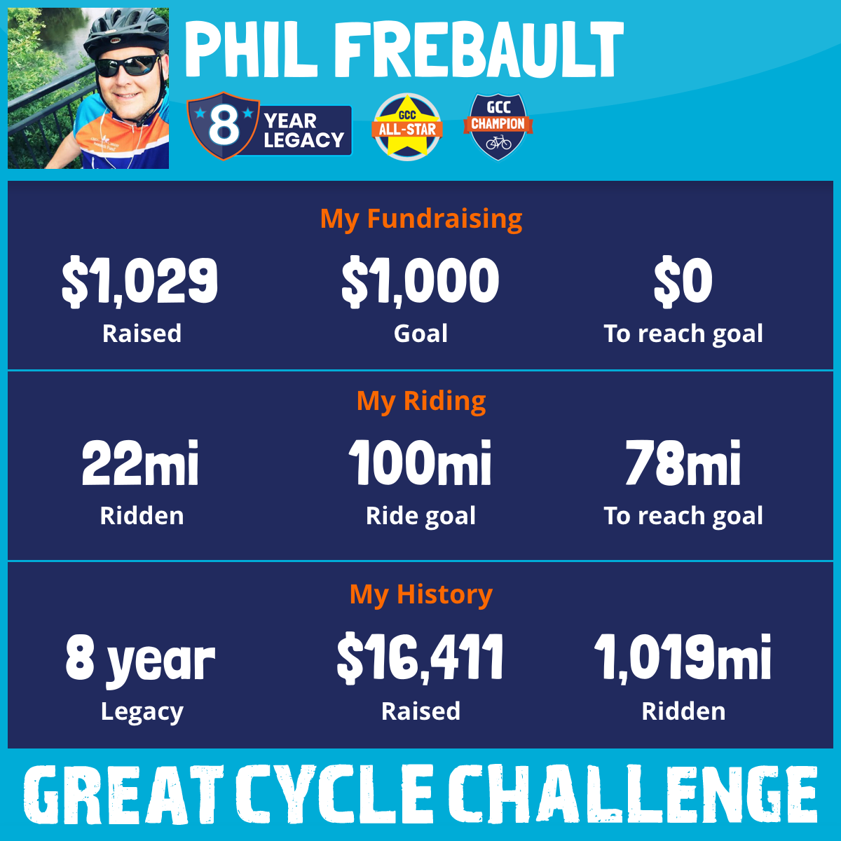 This September, I am embarking on my 8th year of the Great Cycle Challenge to fight kids' cancer!
