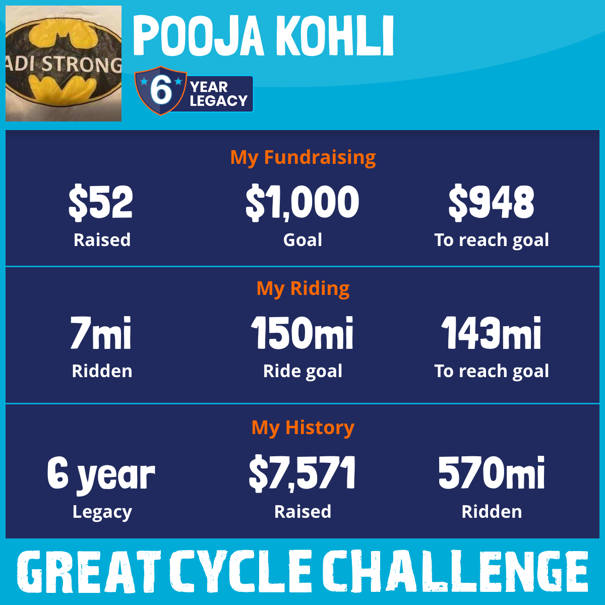I am riding 150 mi for Aditya Kohli. Please sponsor me and support my challenge to fight kids' cancer and save little lives.