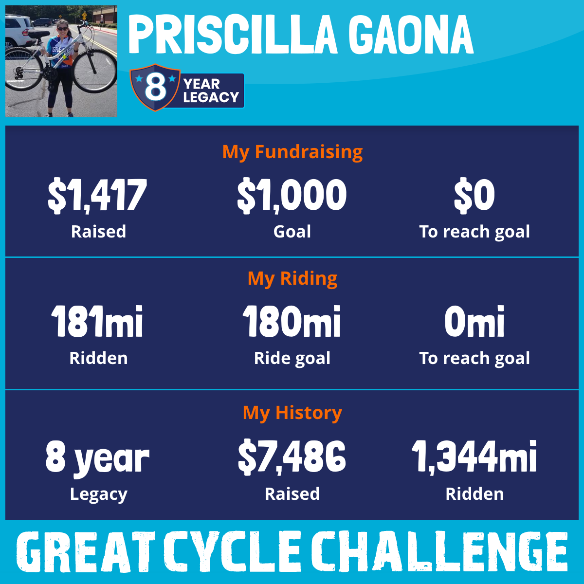 181 mi Ridden$1,417 Raised2025