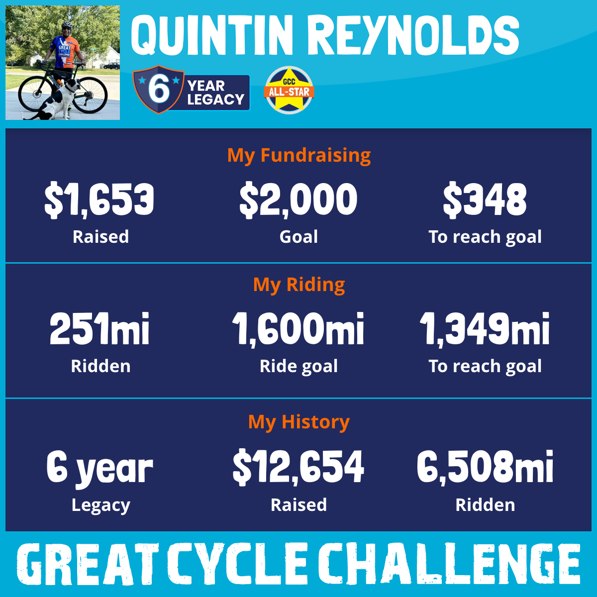 1,631 mi Ridden$3,629 Raised2024