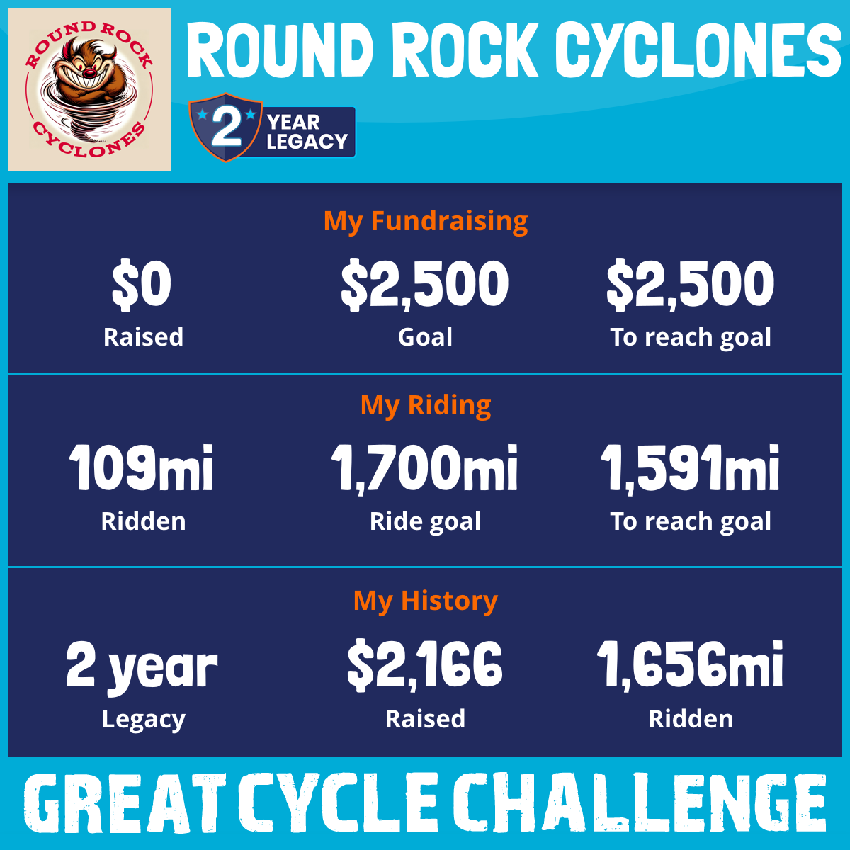 1,219 mi Ridden$4,091 Raised2025