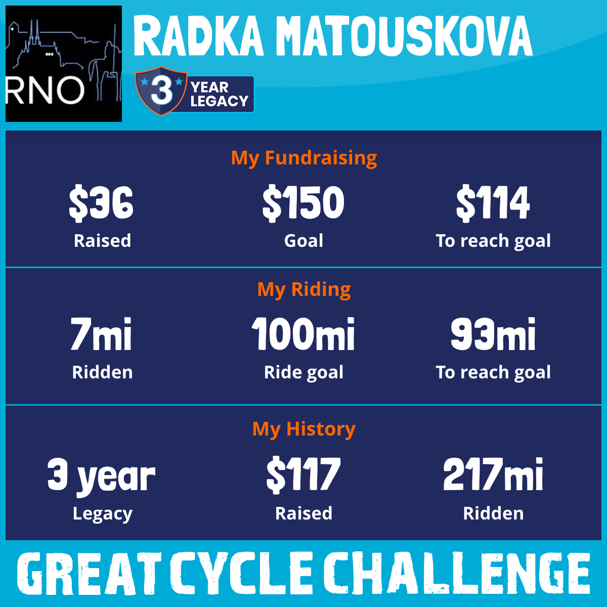 I am riding 100 mi to fight kids' cancer and save little lives. Please sponsor me to support my challenge!
