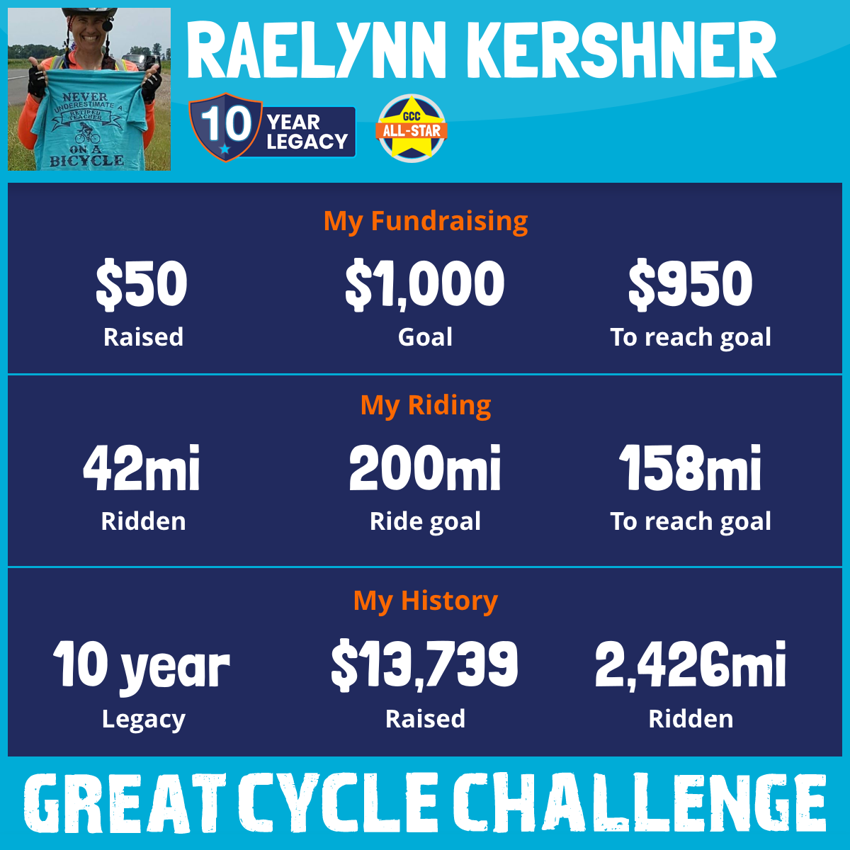 424 mi Ridden$1,648 Raised2020