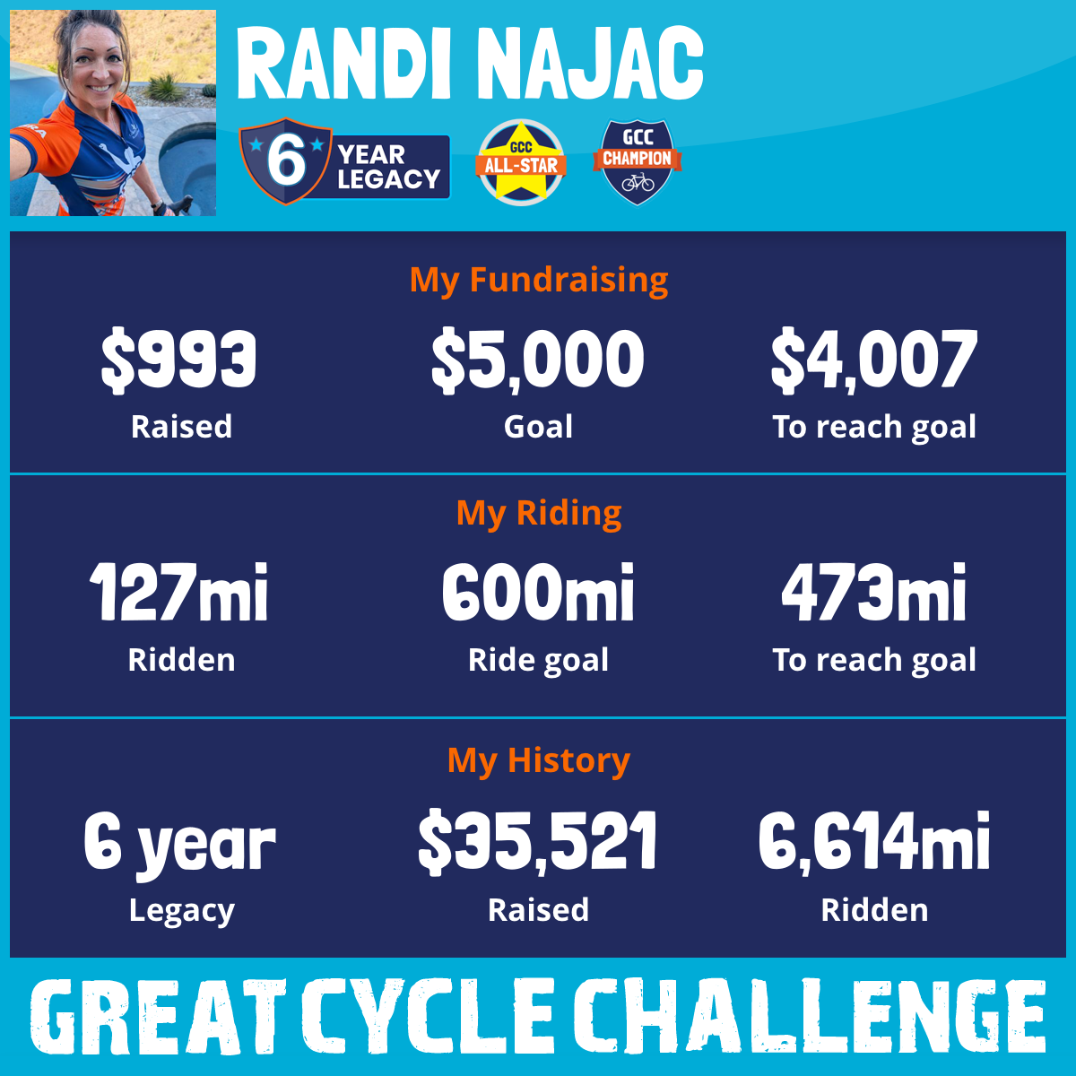 This year, I'm riding in memory of local warrior, Kayd, & for his wonderful family. I'm doing everything in my power to rid the world if this horrible disease so that all kids can be carefree and cancer-free kids! Kayd's diagnosis was grade 2 Medulloblastoma brain cancer. There is still no cure and it is an extremely aggressive form of cancer. The one thing I CAN do is spread the word of the importance of Children's Cancer Research, by riding and talking to everyone I know. I hope you'll help support me, as I ride to honor the memory of a most incredible young, warrior, gone way too soon.