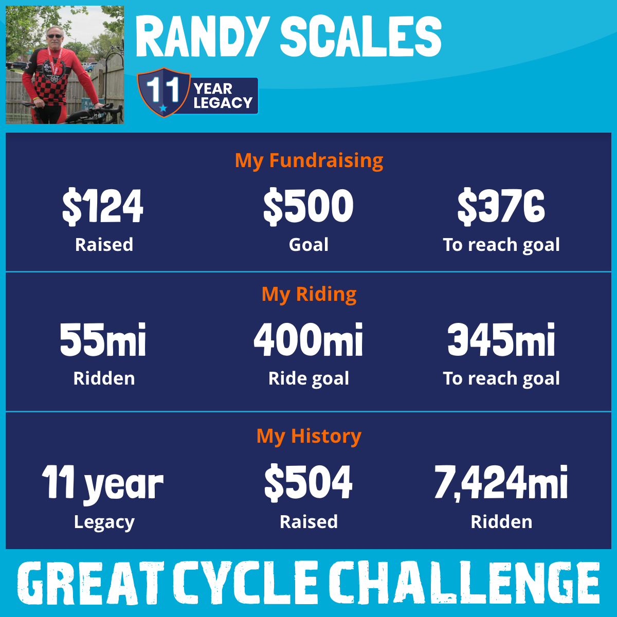 I am riding 400 mi in memory of John E Scales, Sr. Please sponsor me and support my challenge to fight kids' cancer and save little lives.