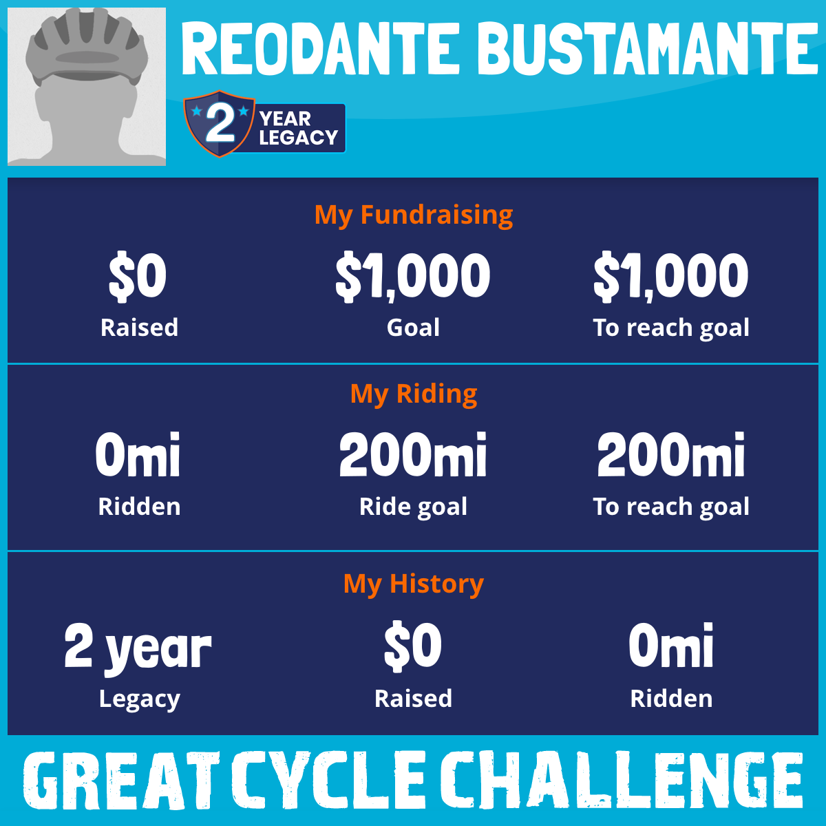I am riding 200 mi for Aldrich Glen Perez Santos. Please sponsor me and support my challenge to fight kids' cancer and save little lives.