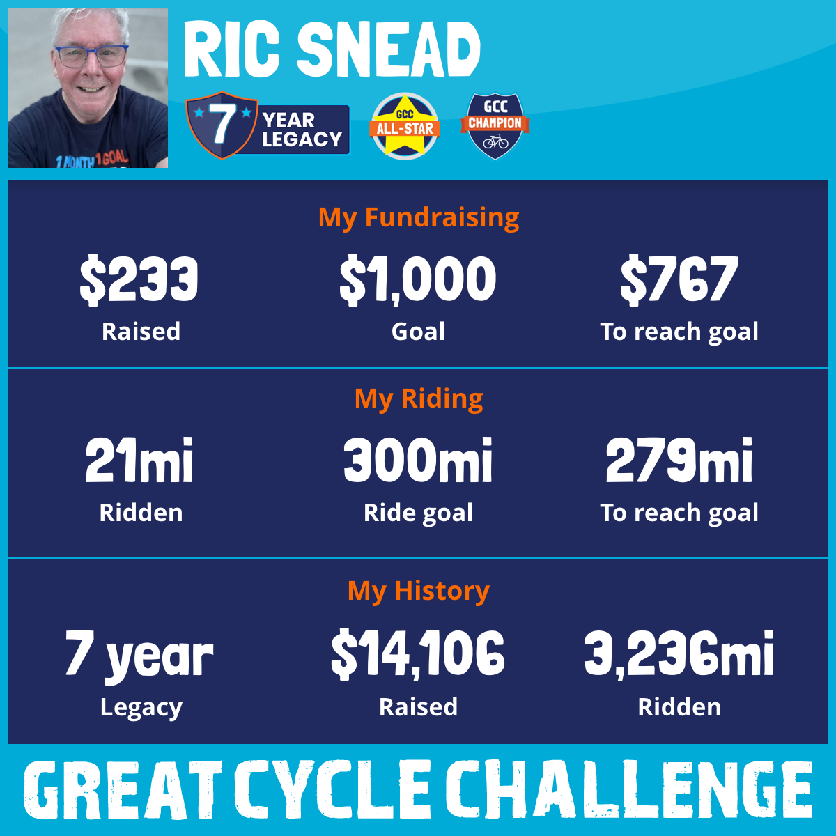 487 mi Ridden$1,144 Raised2024