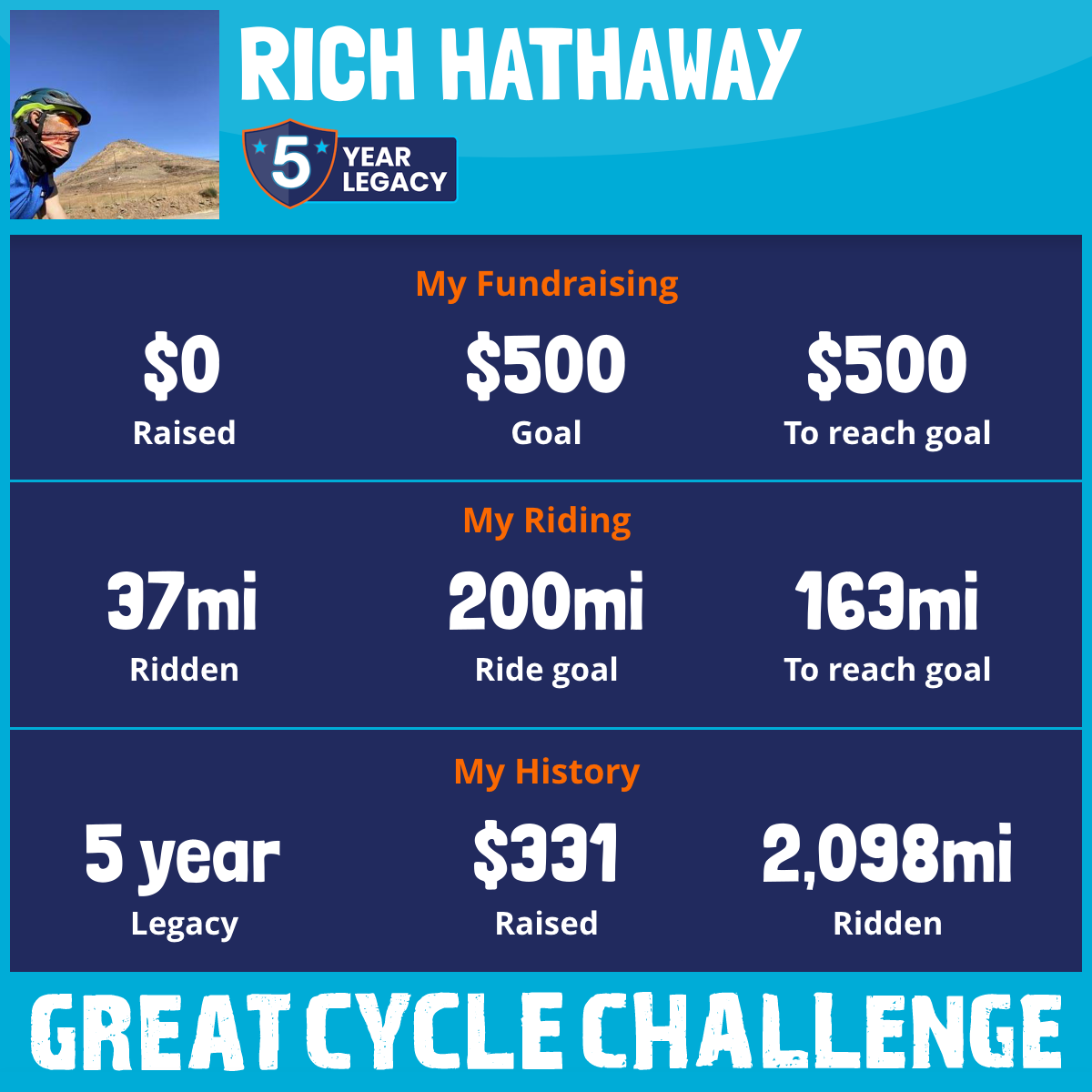 1,987 mi Ridden$207 Raised2020