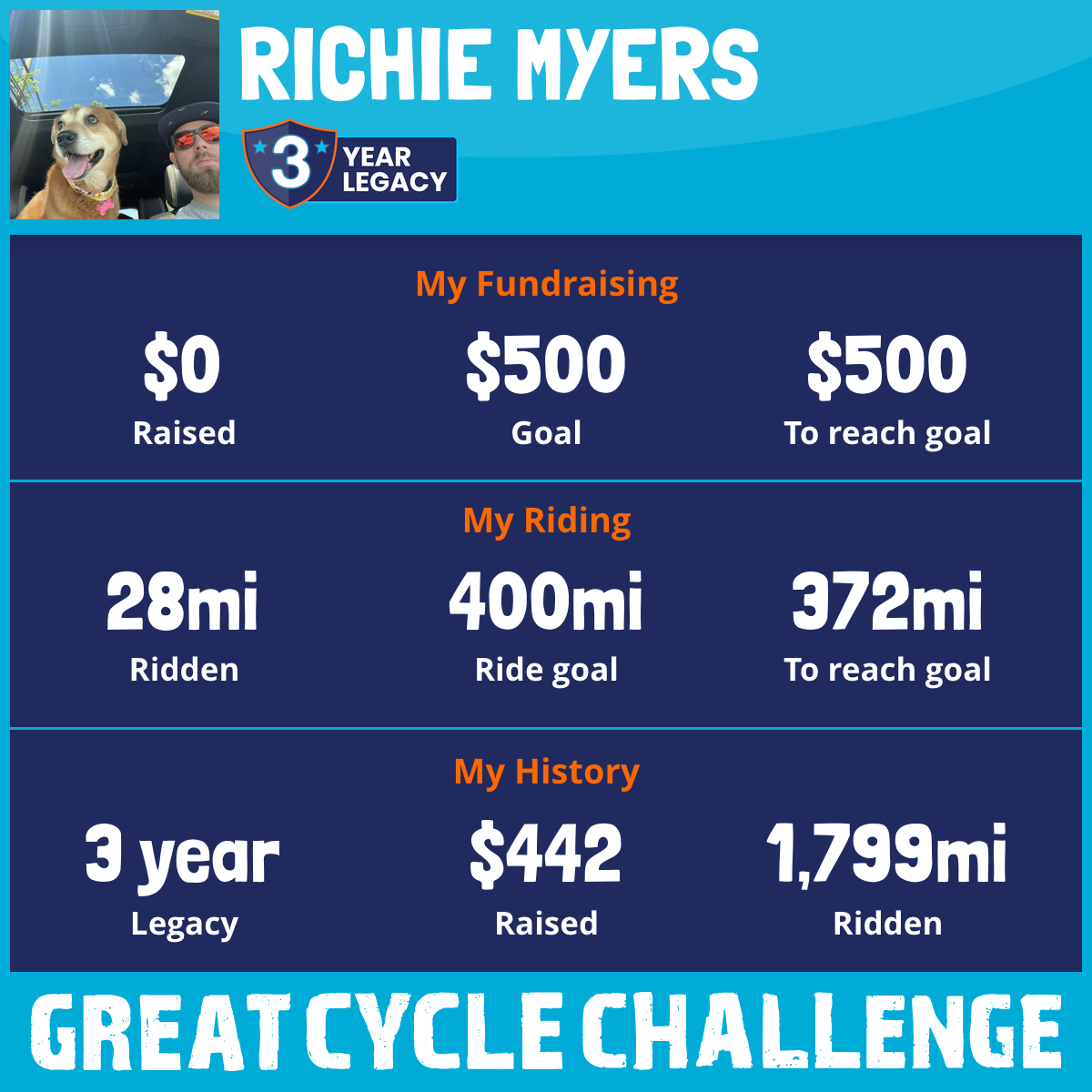 I am riding 400 mi in memory of Ruth King / Jeff Sacks (Survivor). Please sponsor me and support my challenge to fight kids' cancer and save little lives.
