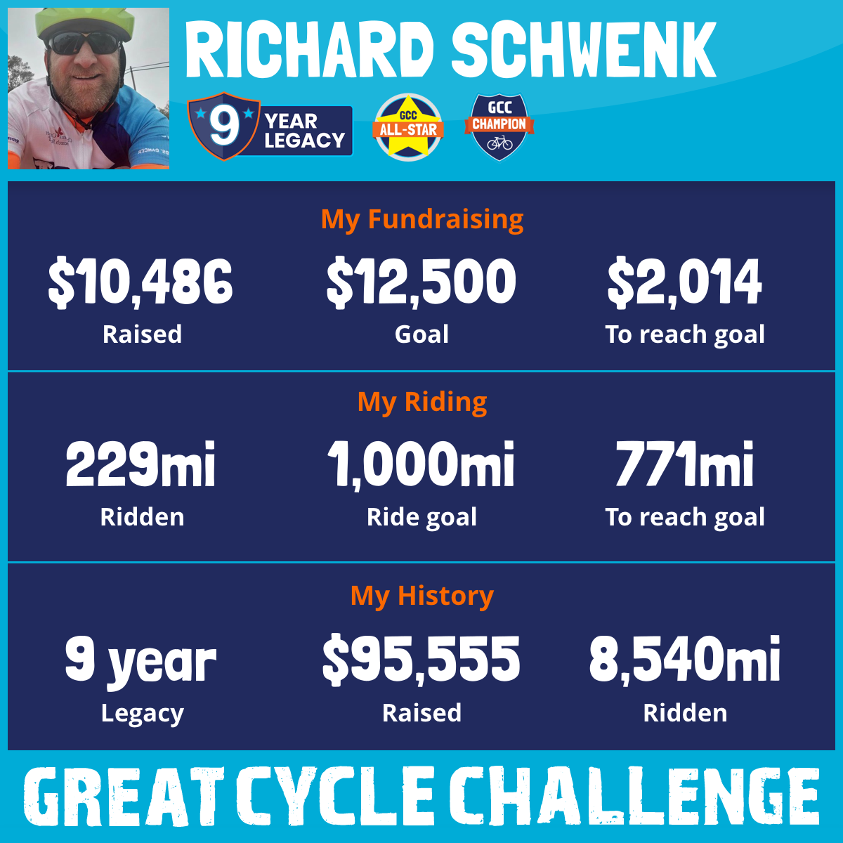 920 mi Ridden$10,000 Raised2017