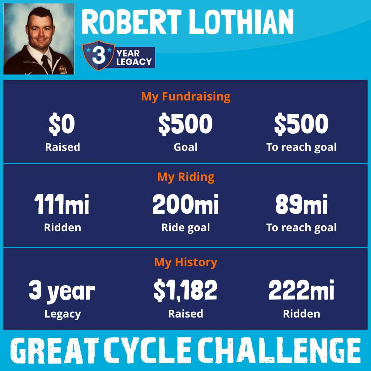 I am riding 200 mi in memory of Robert Zilka. Please sponsor me and support my challenge to fight kids' cancer and save little lives.