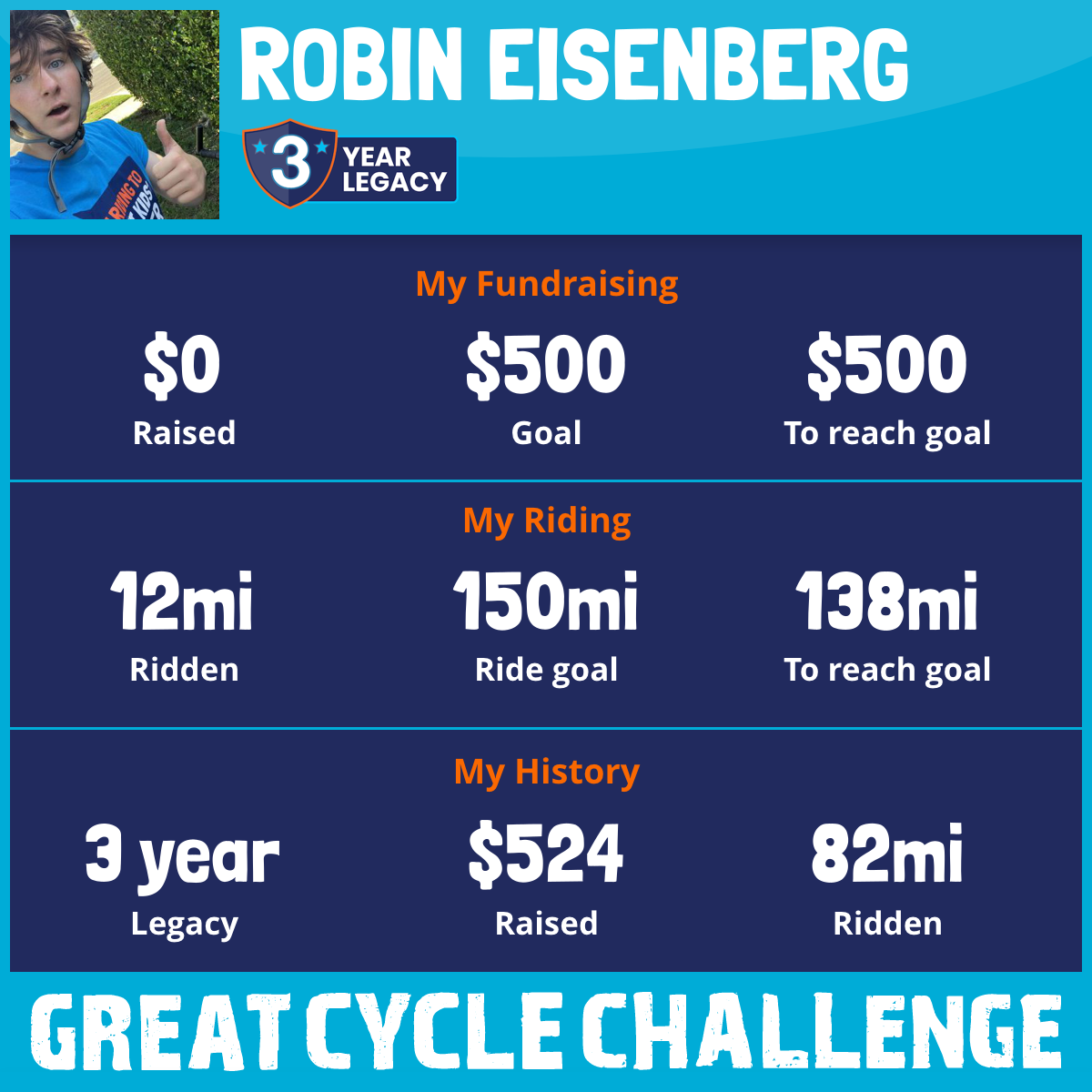 I am riding 150 mi to fight kids' cancer and save little lives. Please sponsor me to support my challenge!