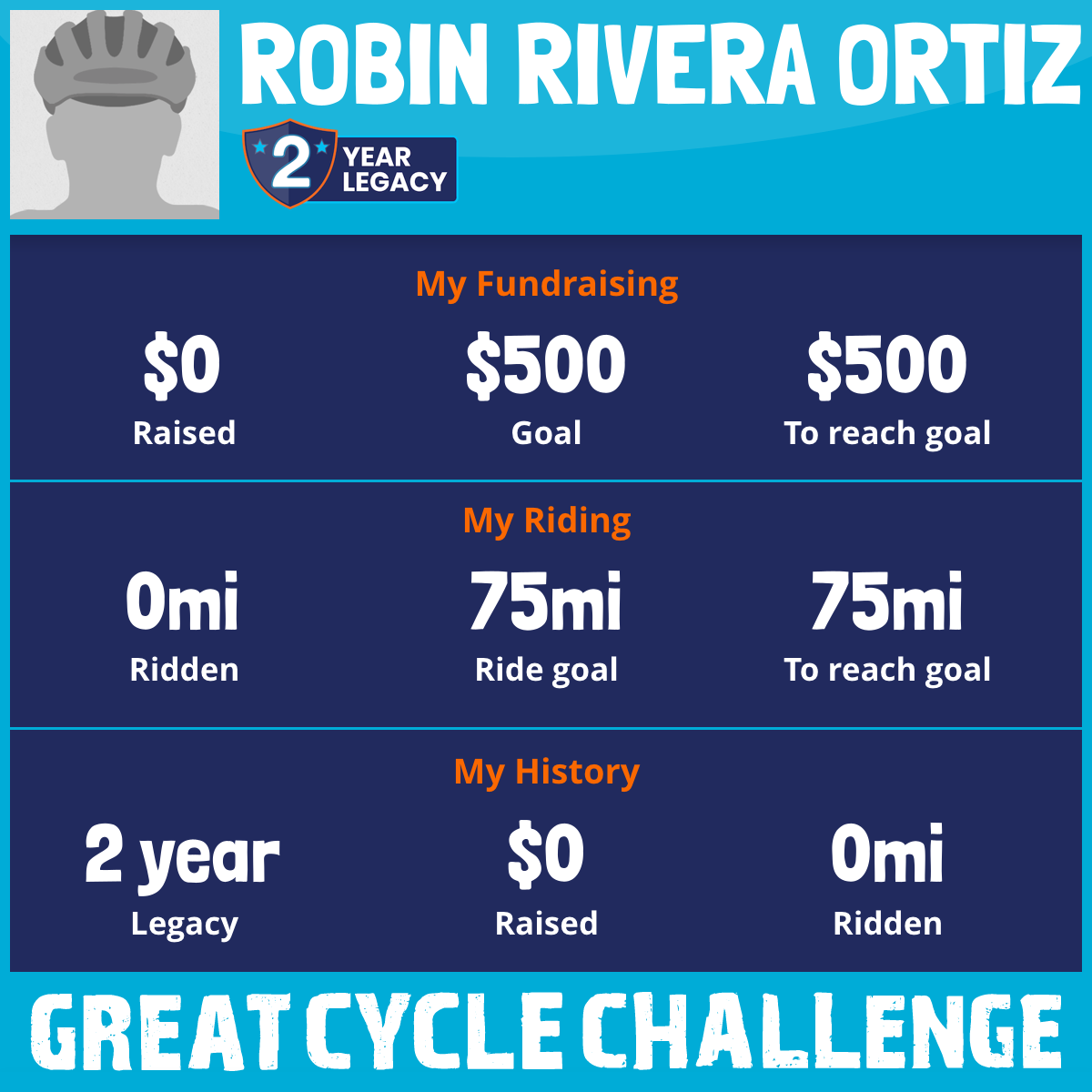 I've raised $0 My goal is $500 Donate Now