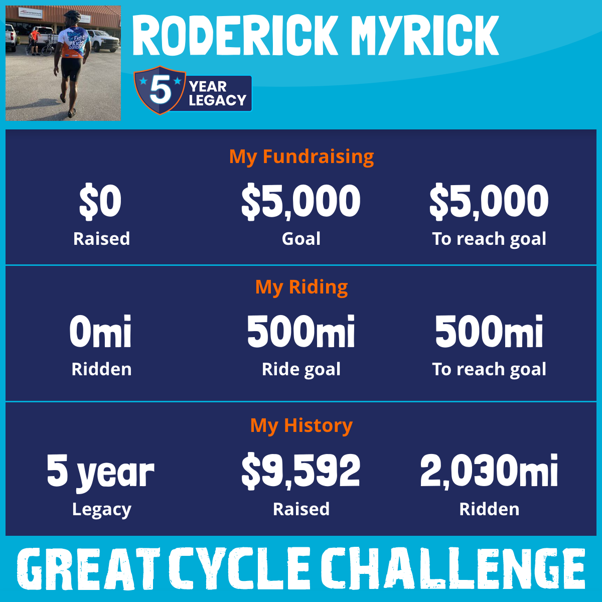I am riding 500 mi in memory of Mary and Collins Myrick. Please sponsor me and support my challenge to fight kids' cancer and save little lives.