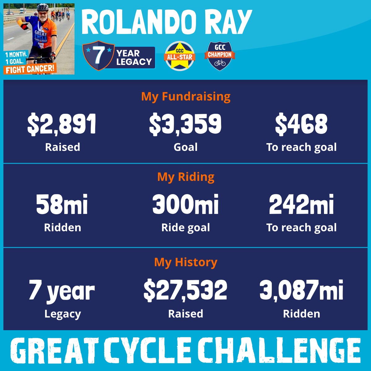 350 mi Ridden$6,900 Raised2025