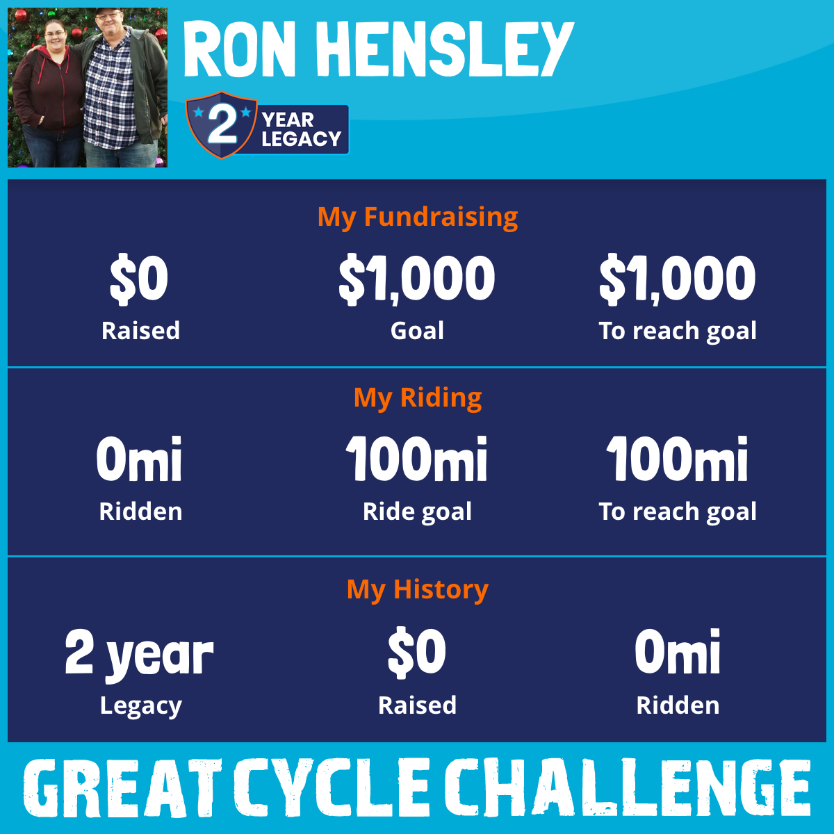 I am riding 100 mi for my dad, Chester Hensley. Please sponsor me and support my challenge to fight kids' cancer and save little lives.