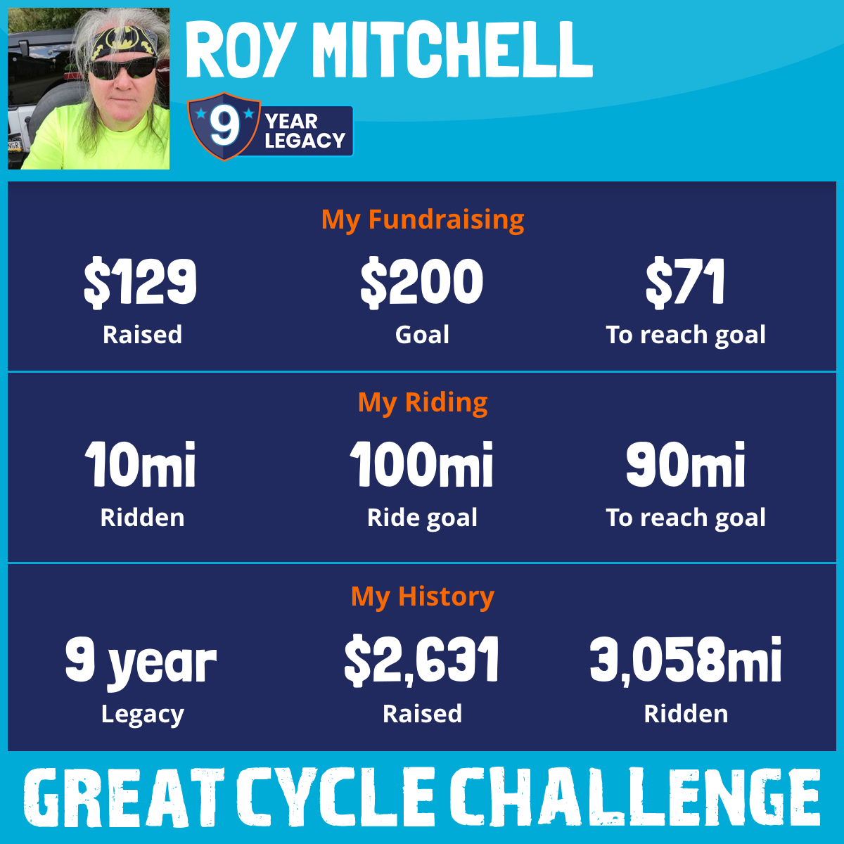 15 Sep 2025Due to some physical limitations, I am having touble riding this year. My great friend Cheri has offered to team up with me to achieve the goals.