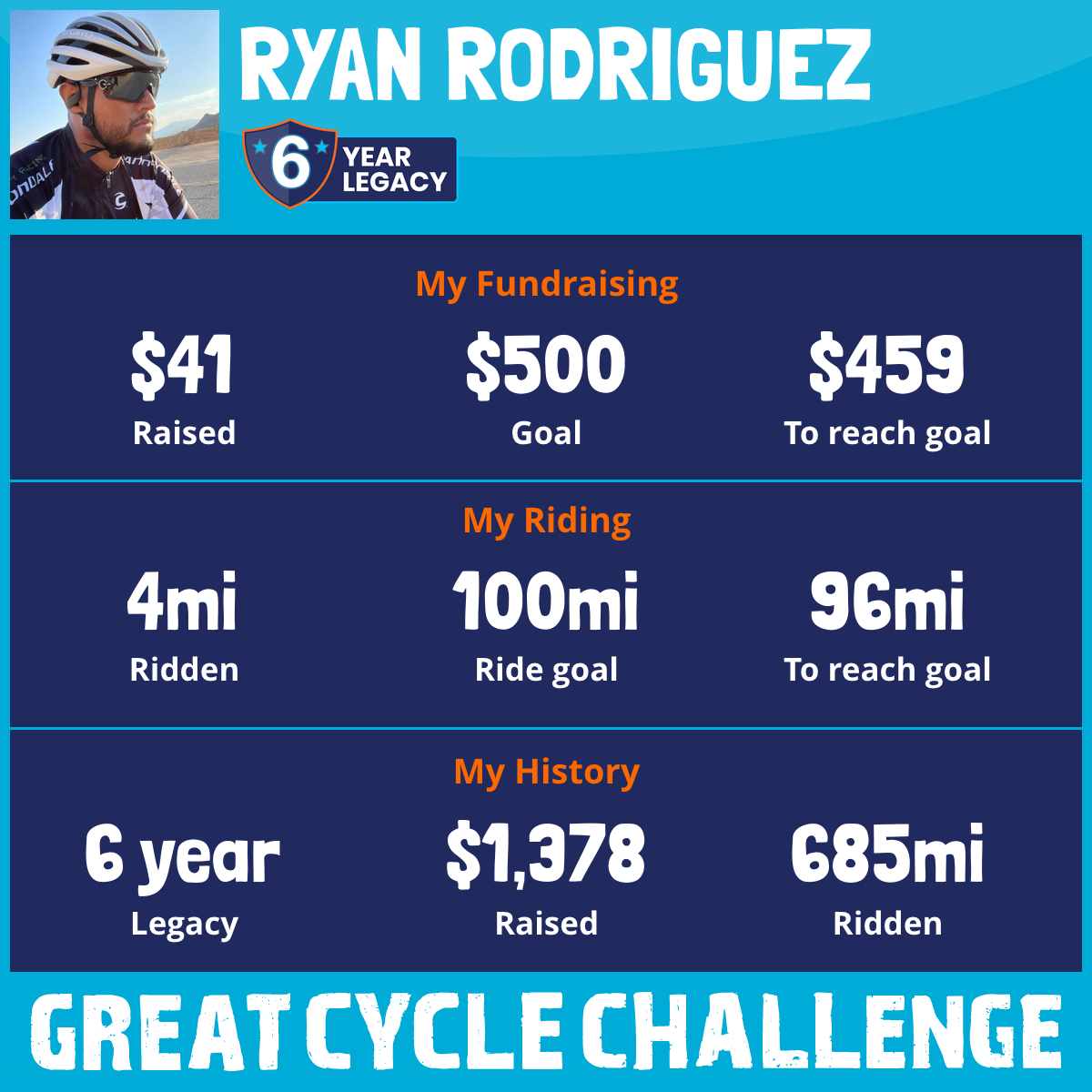I am riding 100 mi in memory of Michelle Rodriguez. Please sponsor me and support my challenge to fight kids' cancer and save little lives.