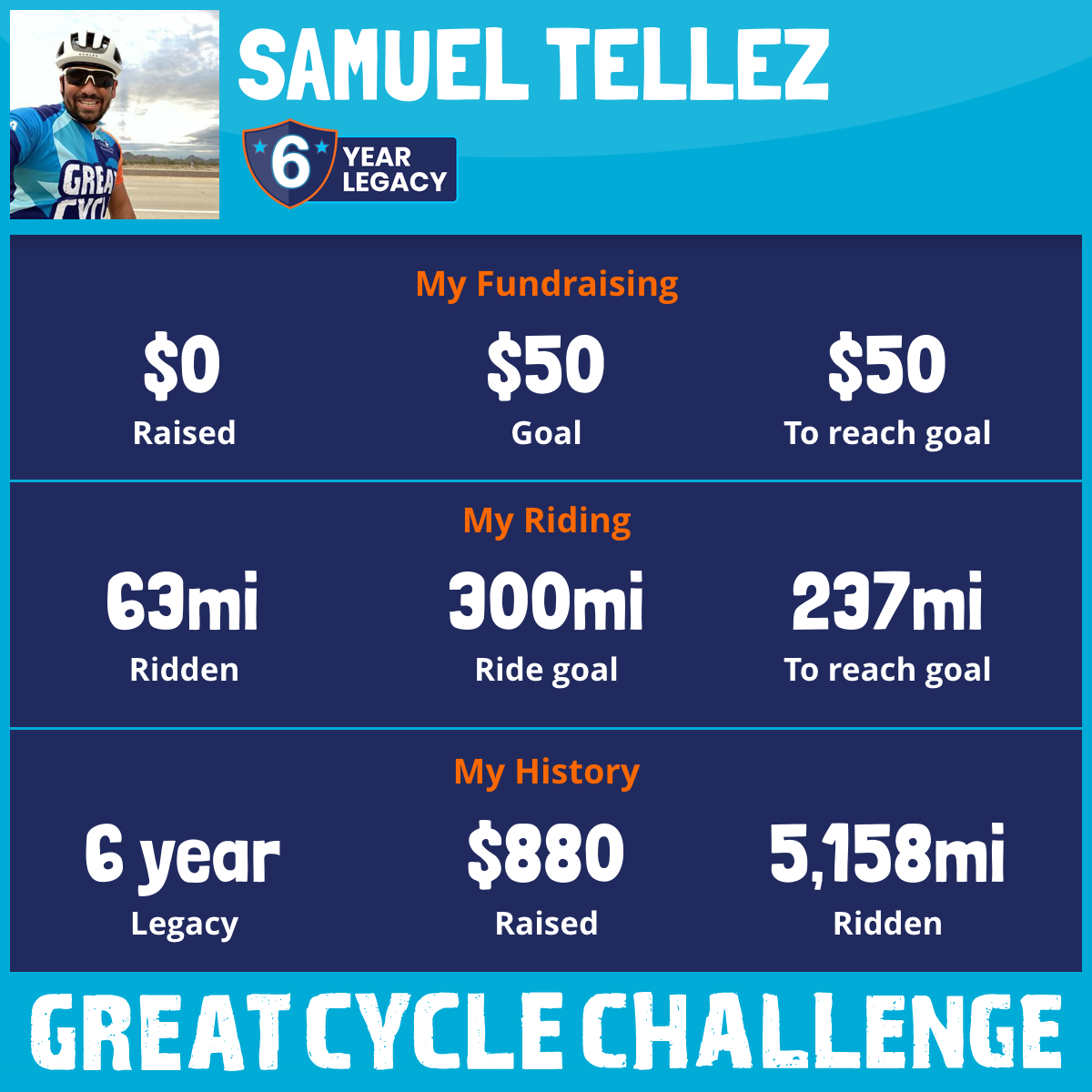I am riding 300 mi for my wife, Jenifer Tellez. Please sponsor me and support my challenge to fight kids' cancer and save little lives.