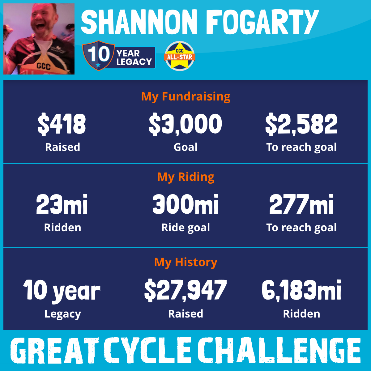 I challenge myself and all of you to help me eradicate cancer. This is always my goal for participating in this event every year. Help me be a GCC HERO in ‘22.