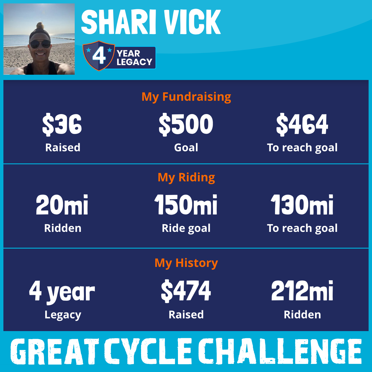 192 mi Ridden$438 Raised2020