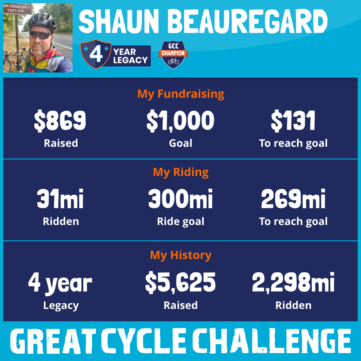 923 mi Ridden$2,598 Raised2024