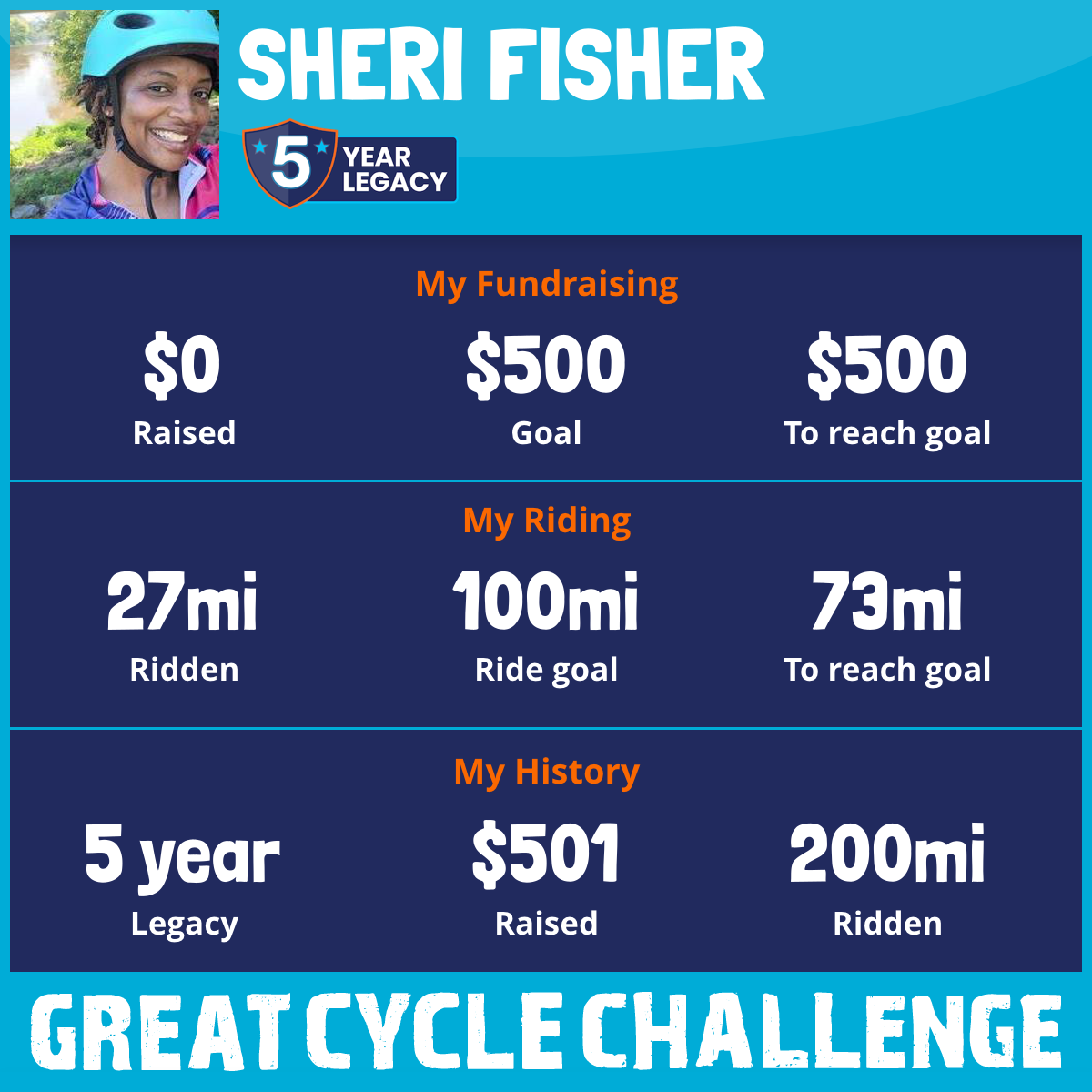 I am riding 100 mi in memory of Stacy. Please sponsor me and support my challenge to fight kids' cancer and save little lives.