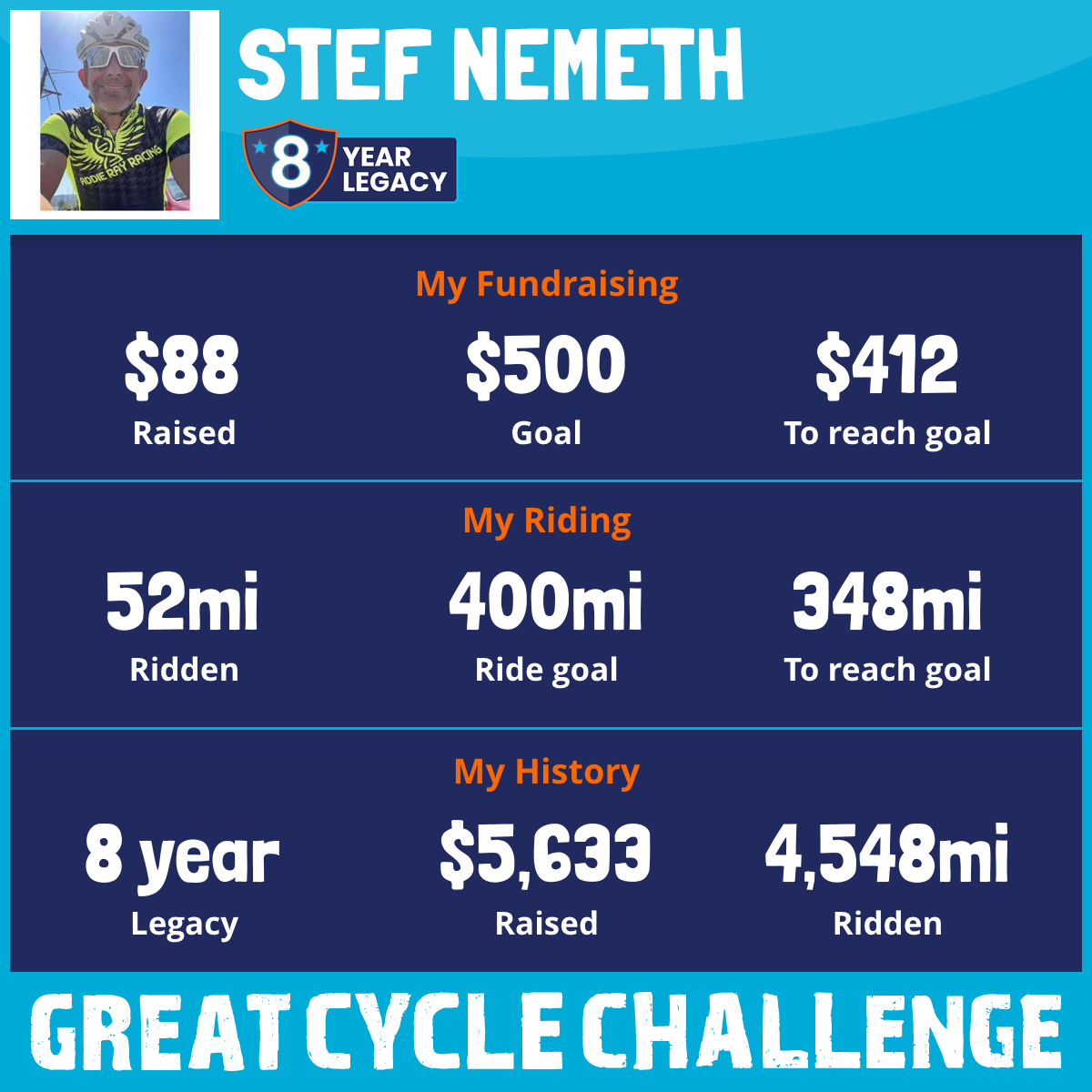 462 mi Ridden$1,012 Raised2022