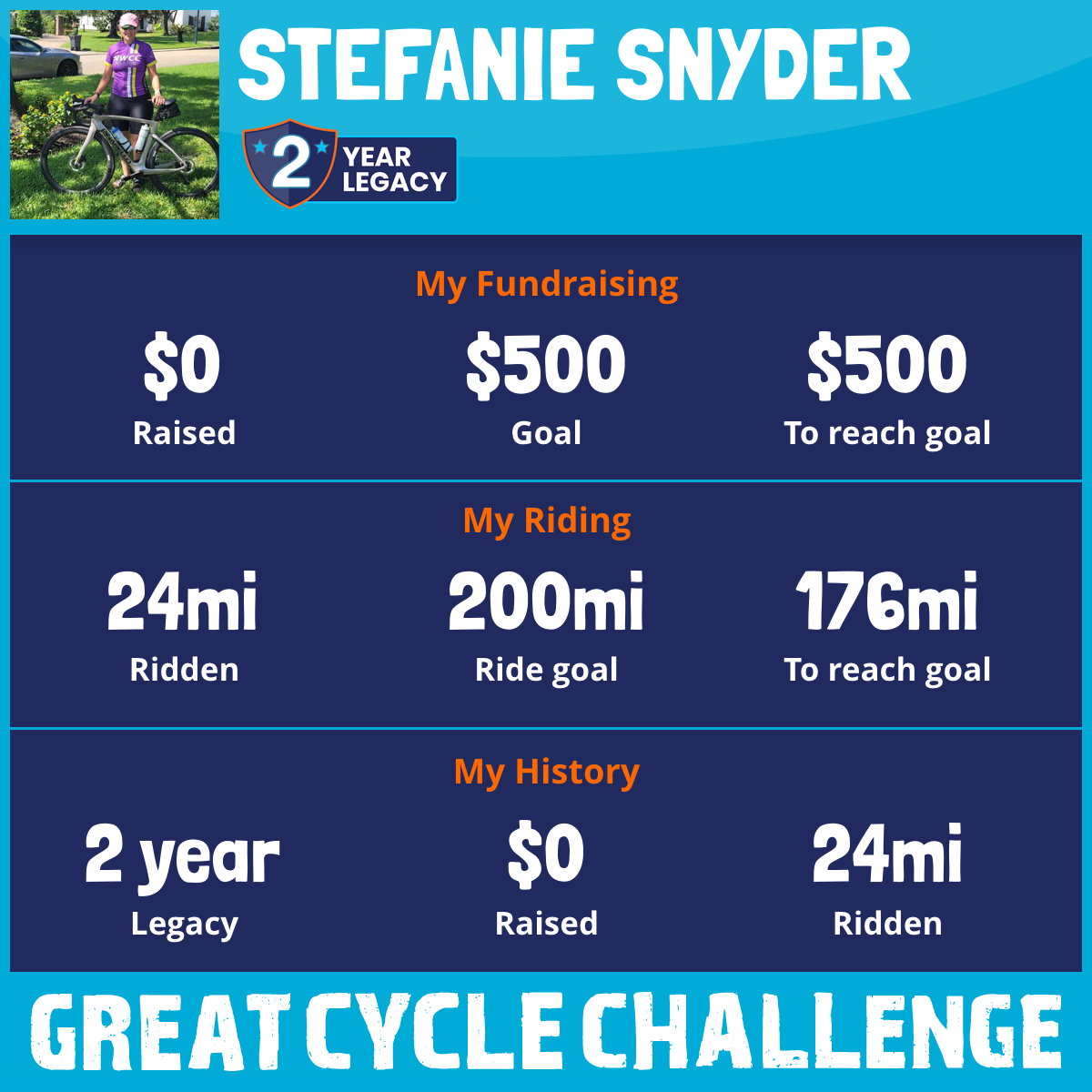 My goal this month was to cycle 200 miles and raise $500 in the Great Cycle Challenge which directly supports kids with cancer. On Saturday, I completed a 50 mile ride and have surpassed my goal. It is worth every minute of my time to help these kiddos.