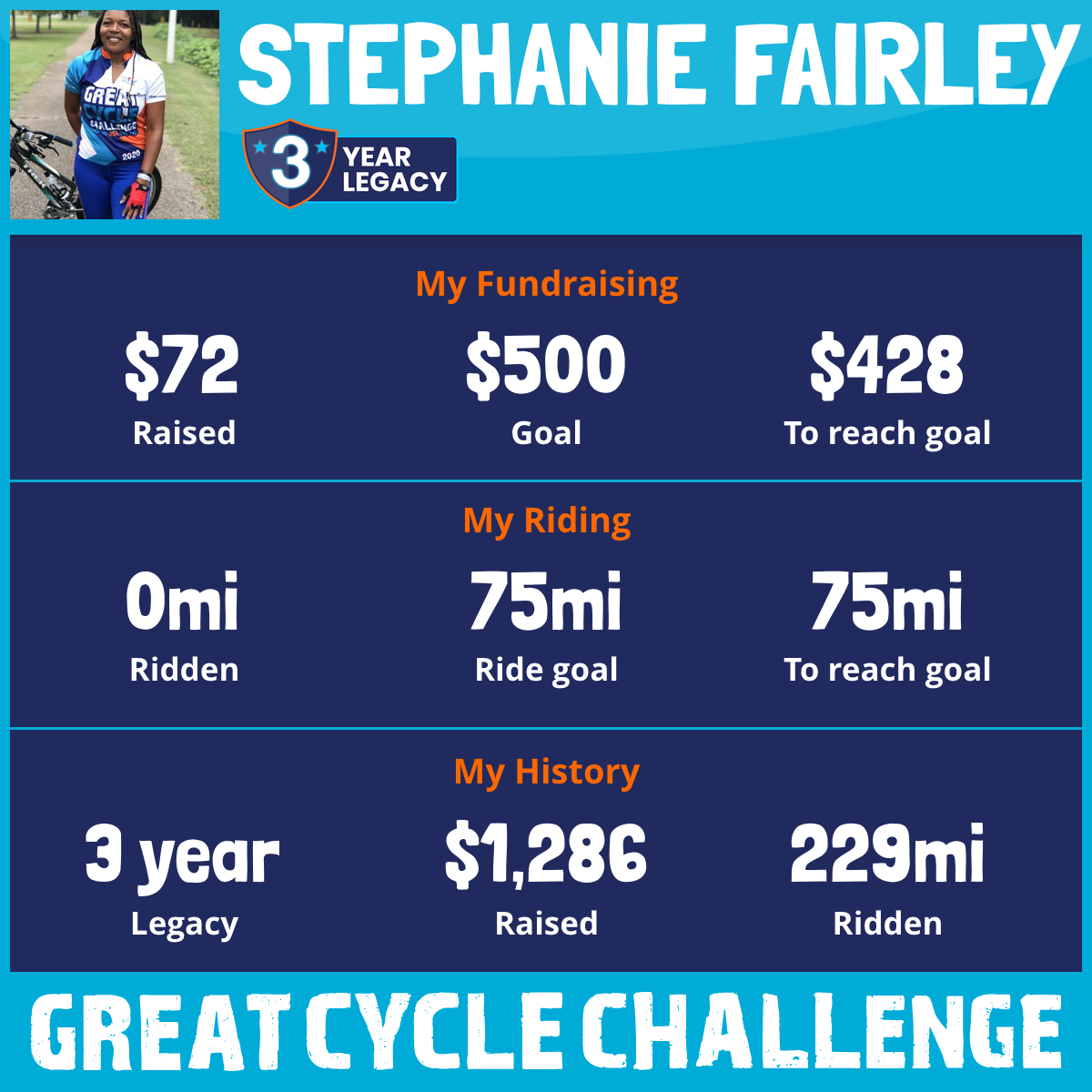I am riding 75 mi in memory of Garnell Brown. Please sponsor me and support my challenge to fight kids' cancer and save little lives.