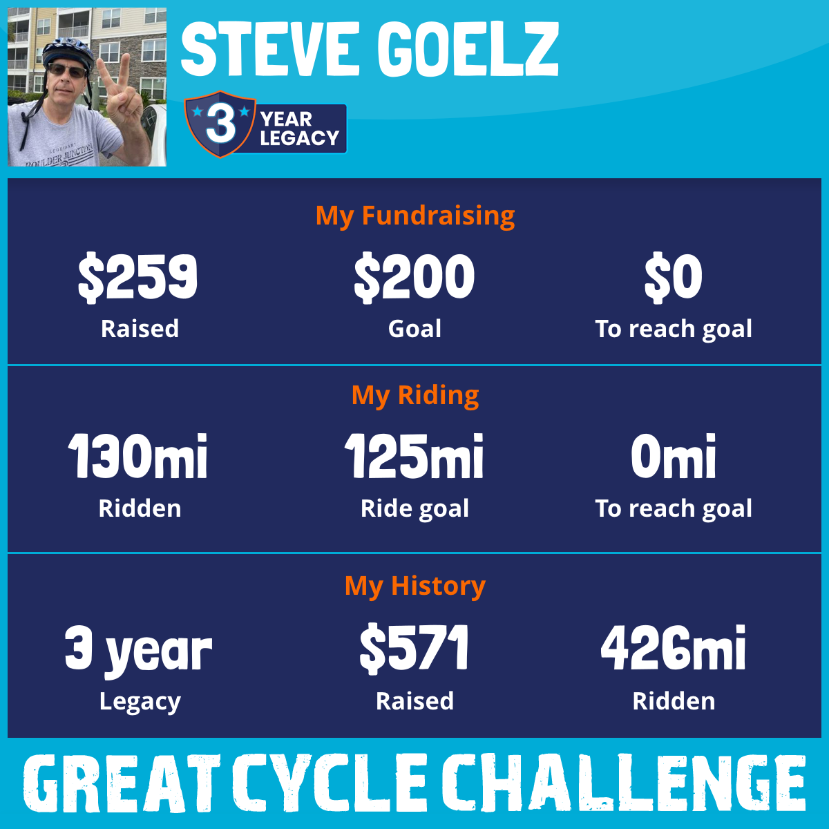 “While many people ride, you ride with purpose -- helping kids with cancer!! Way to go and ride on.... Thanks for doing this!!”