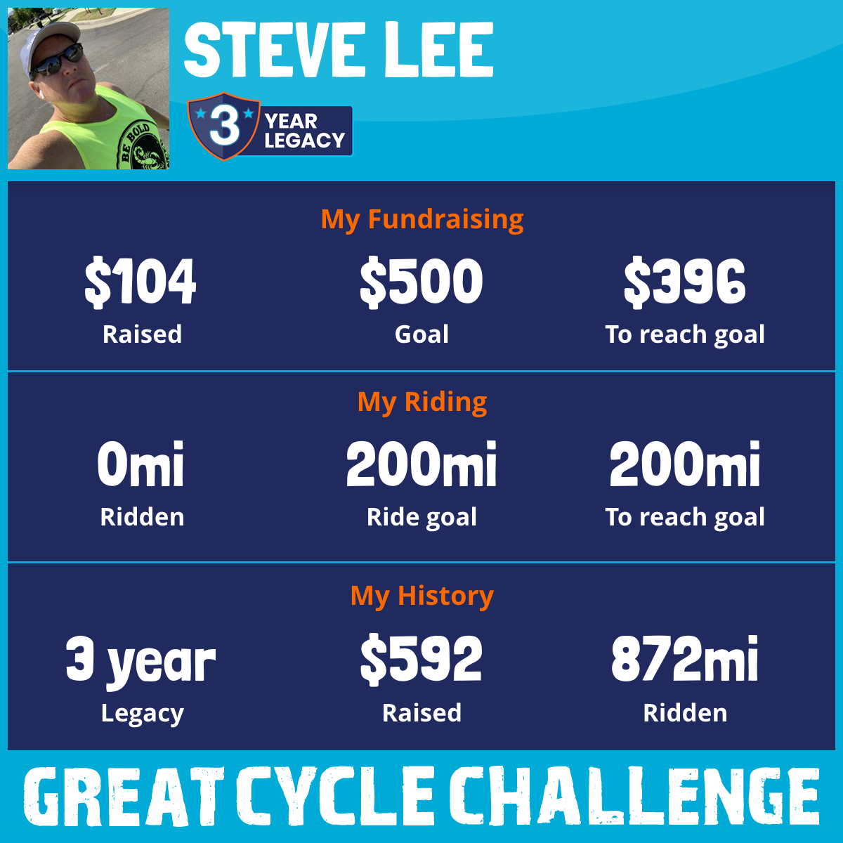 I am riding 200 mi in memory of Brian White & Fred Eguchi. Please sponsor me and support my challenge to fight kids' cancer and save little lives.