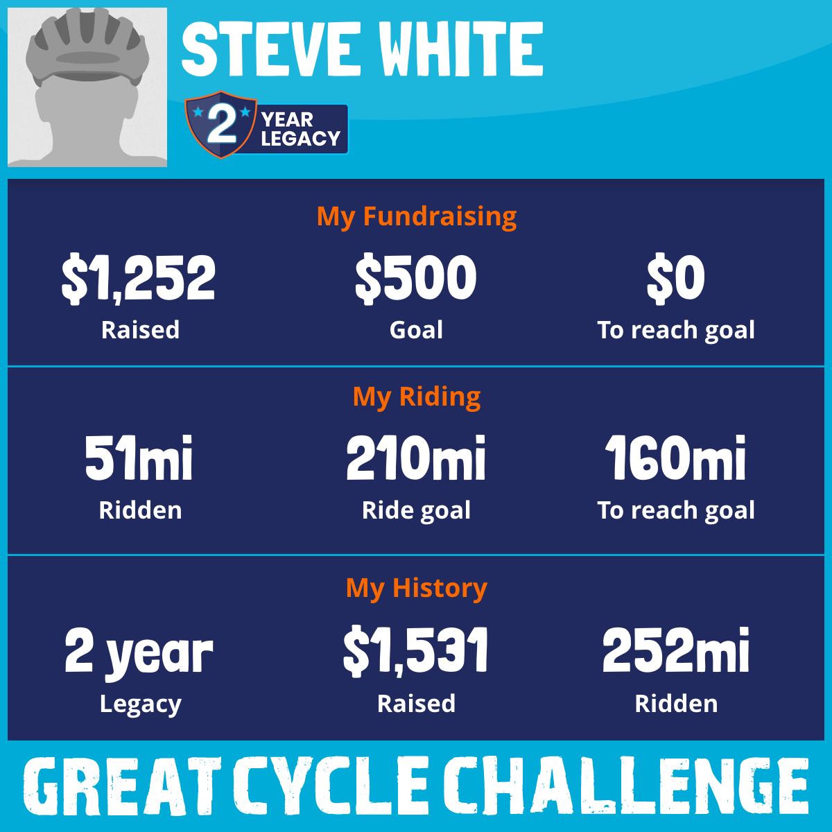 I am riding 210 mi for Sharon. Please sponsor me and support my challenge to fight kids' cancer and save little lives.