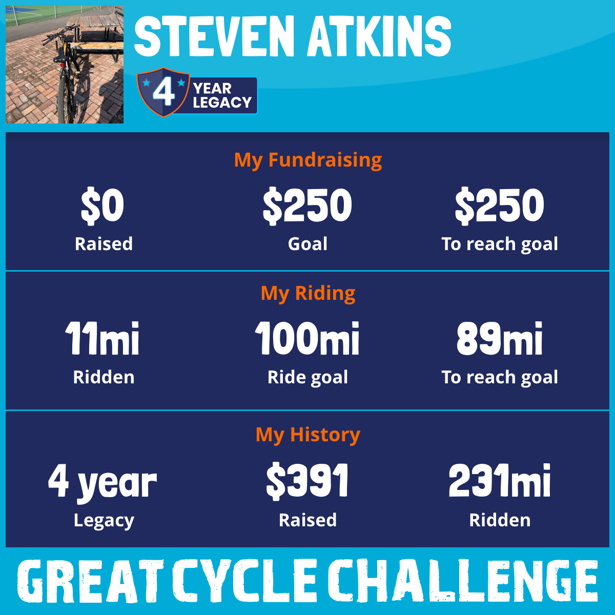 I am riding 100 mi to fight kids' cancer and save little lives. Please sponsor me to support my challenge!