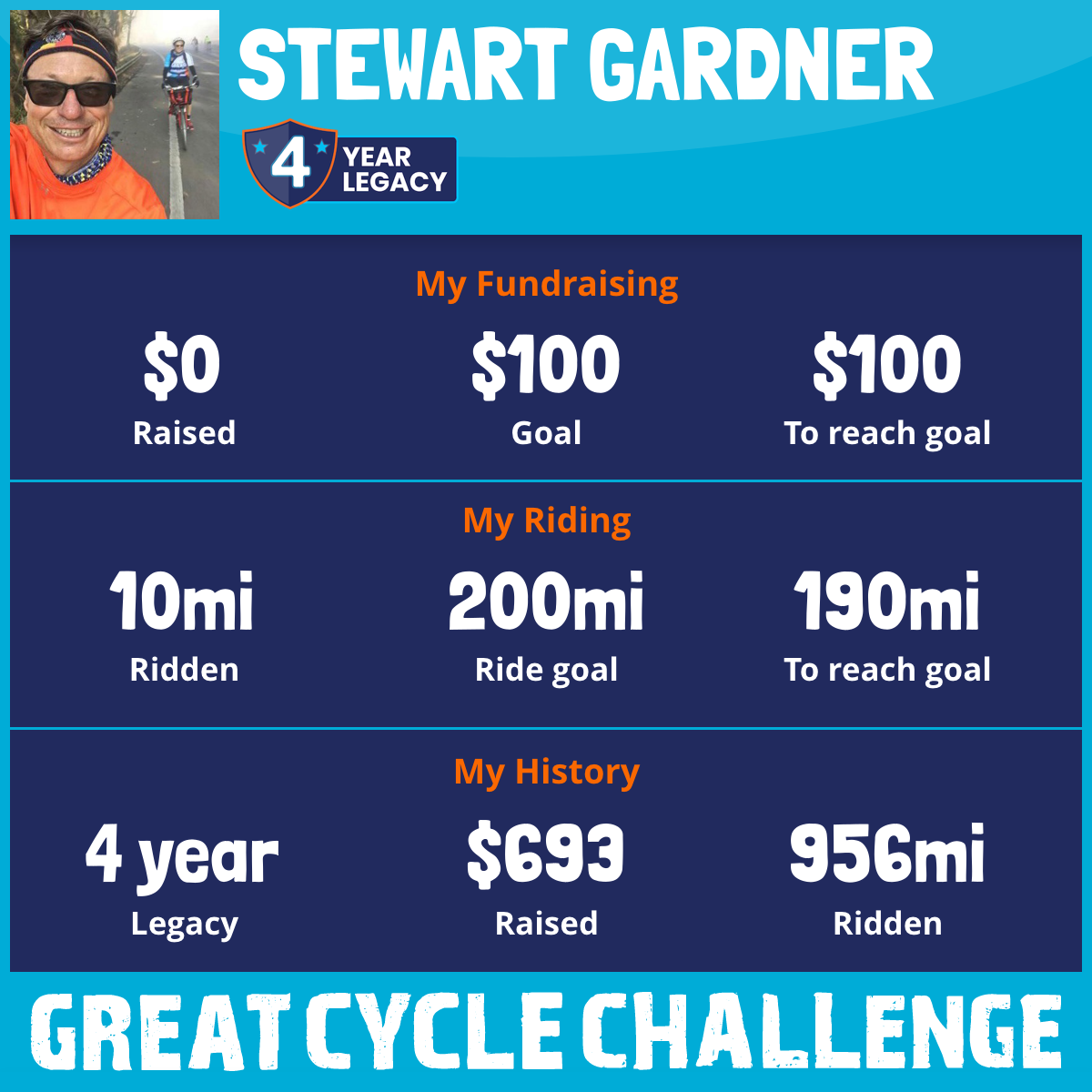 I am riding 200 mi in memory of Karin Gardner. Please sponsor me and support my challenge to fight kids' cancer and save little lives.