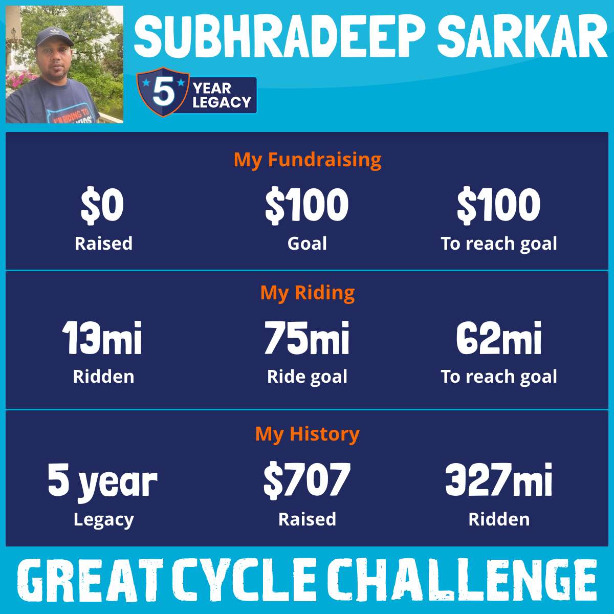 I am riding 75 mi in memory of In Memory of Deves. Please sponsor me and support my challenge to fight kids' cancer and save little lives.