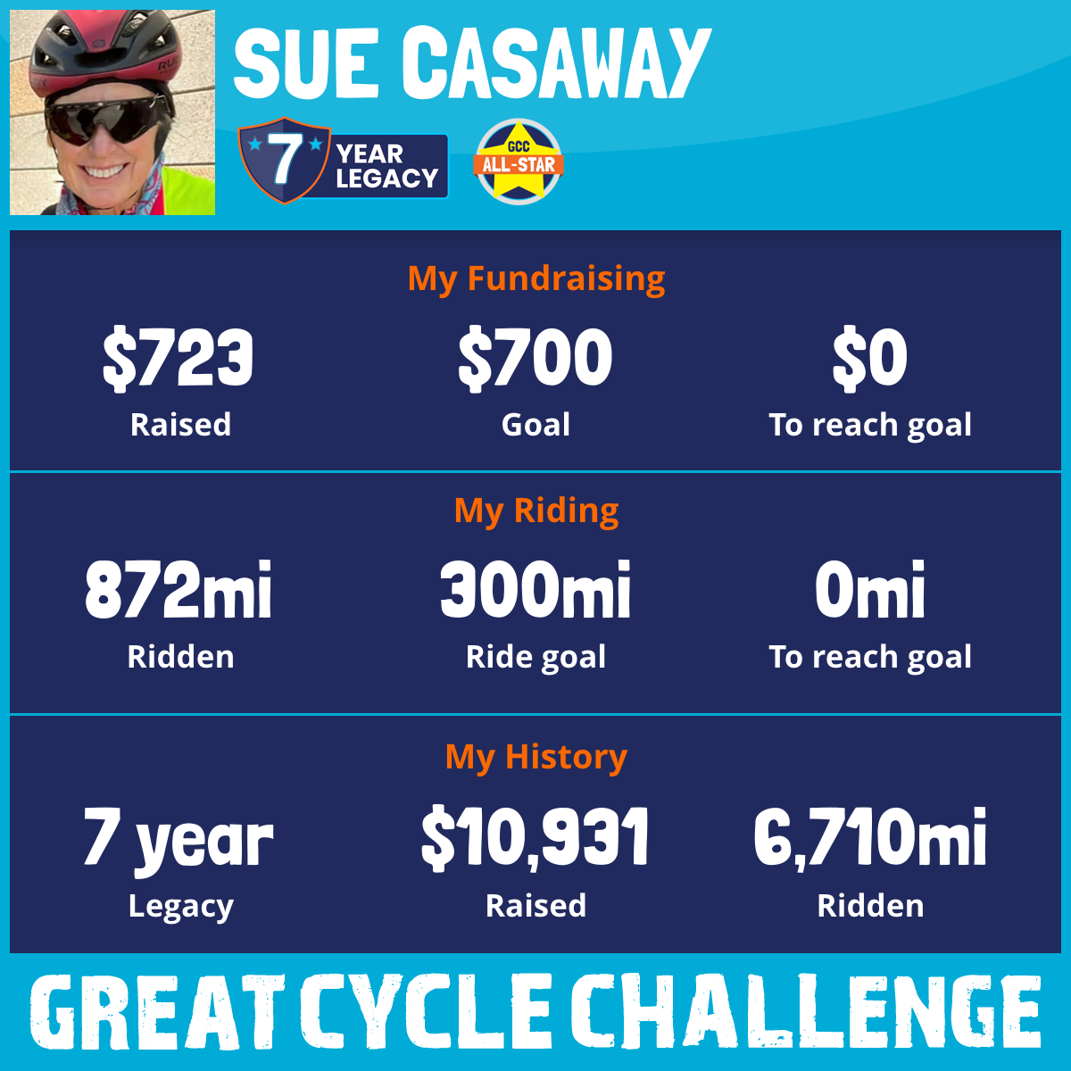 This September, for my 7th consecutive year, I am taking part in the Great Cycle Challenge to fight kids' cancer!