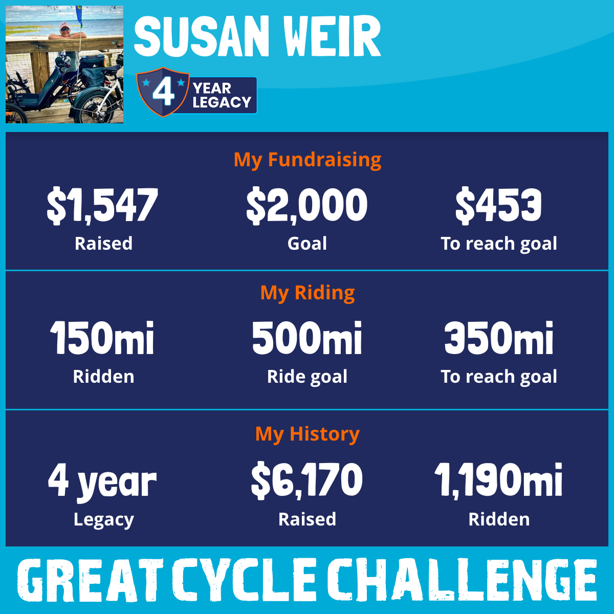 I am riding 200 mi for All of Them. Please sponsor me and support my challenge to fight kids' cancer and save little lives.