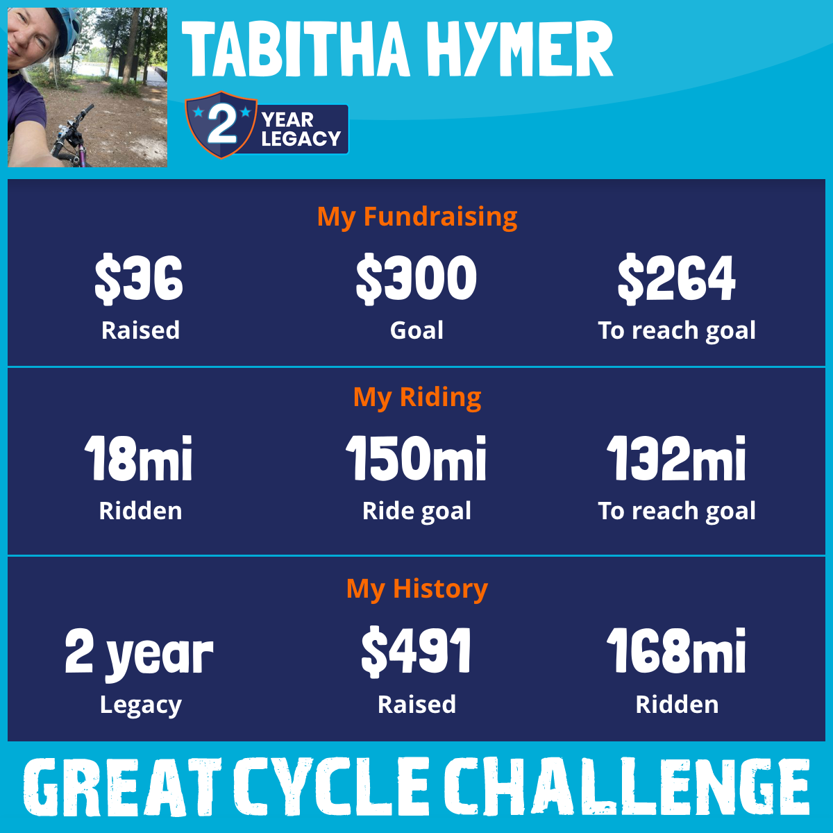 “Go, Tabi! Proud that you got all this done and all your birthday celebrations and travel, too! Biking lets you eat more cake, and it's a great cause!”
